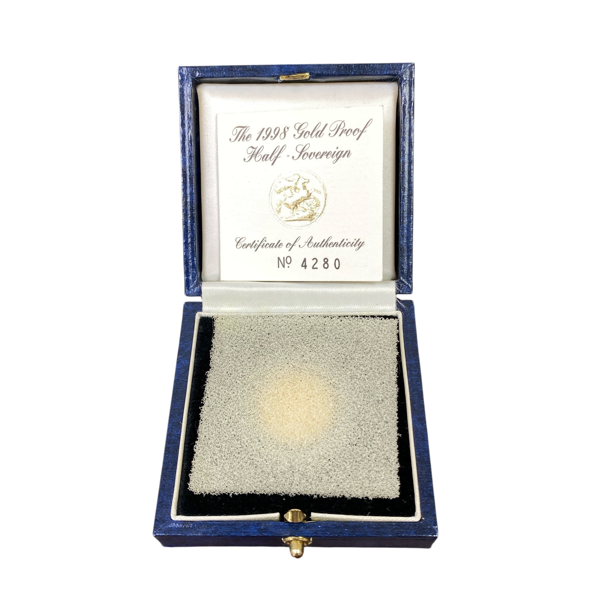 Add regal heritage and timeless collectability to your collection with this boxed 1998 22ct gold proof half sovereign coin—a beautifully presented piece celebrating British history and craftsmanship, perfect for collectors or as a special gift.