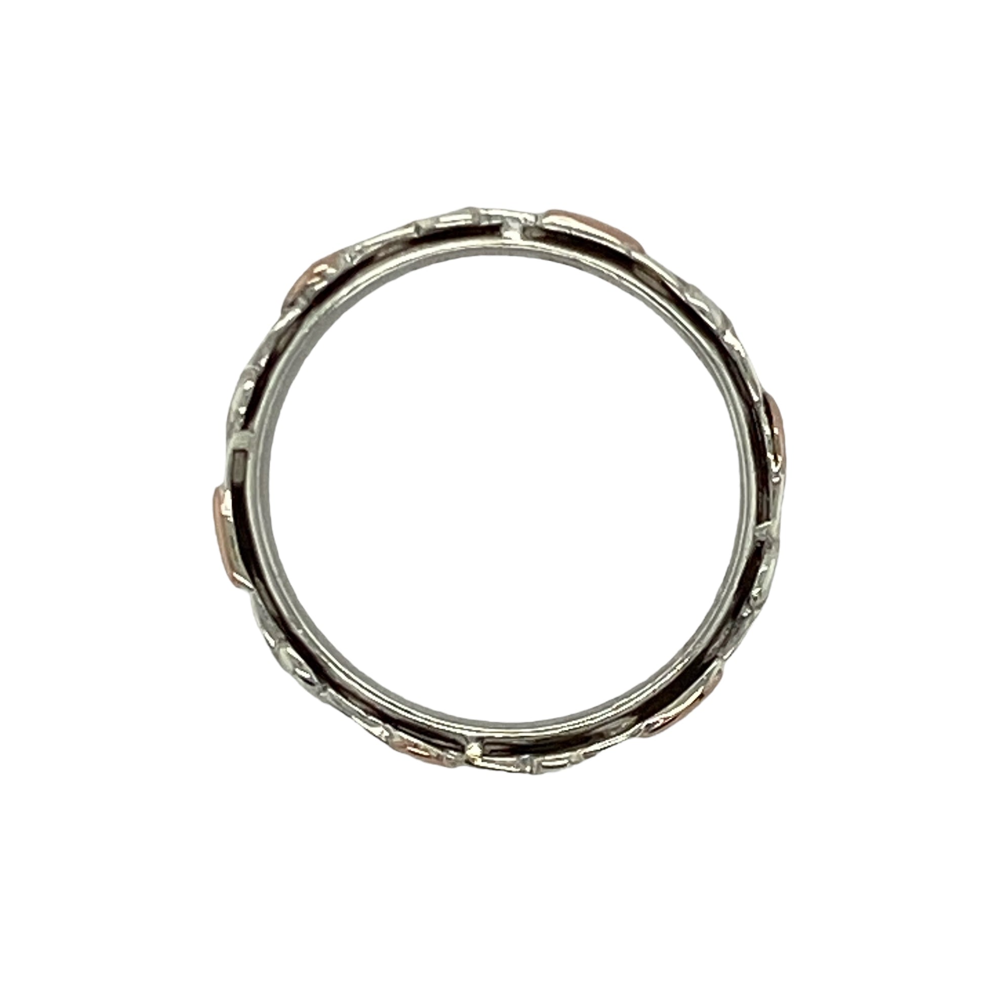 Bring heartfelt meaning and natural elegance to your collection with this pre-owned 925 silver with 9ct rose gold Clogau Cariad Tree of Life band ring—a beautiful design symbolising love, growth, and connection.