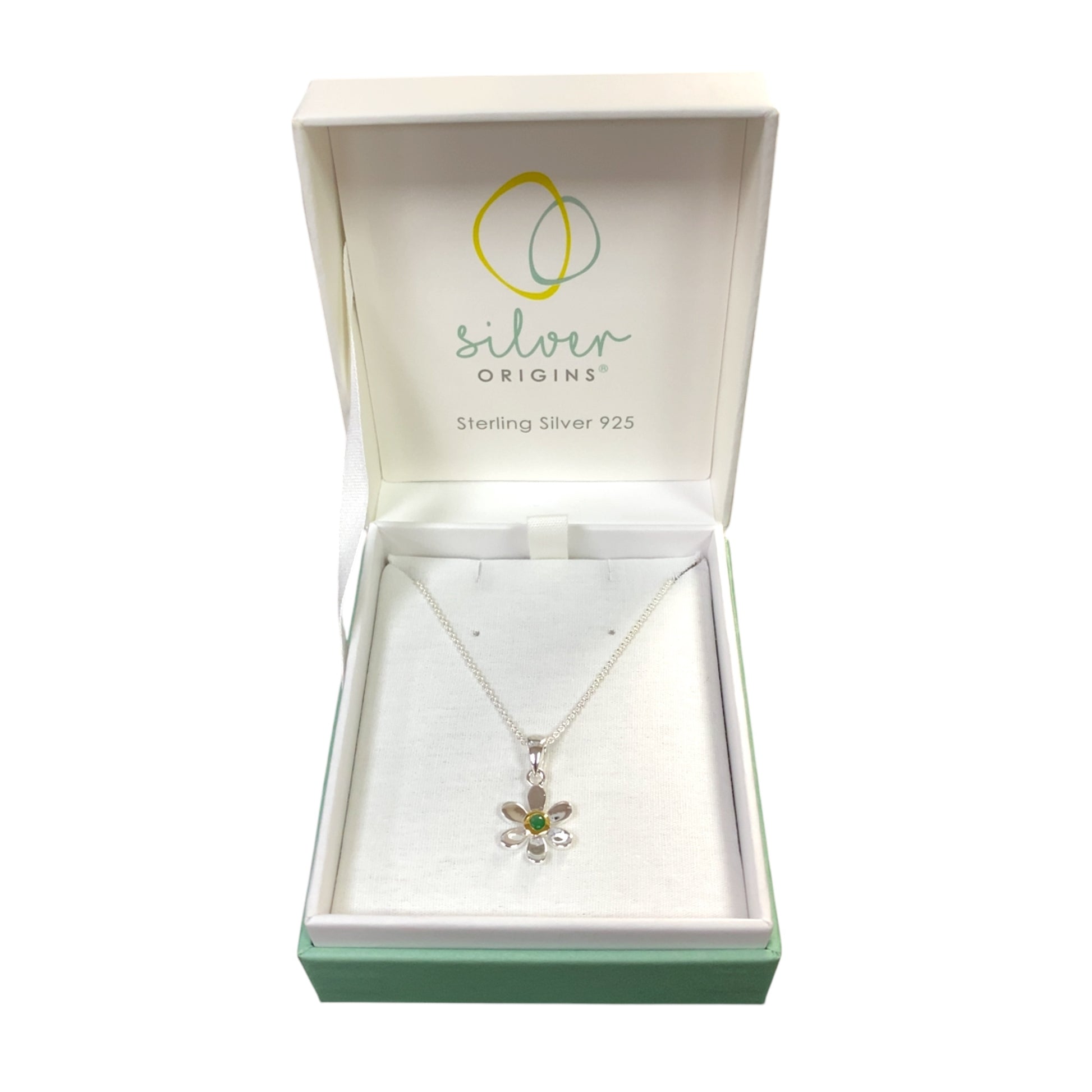 Add a touch of elegance and personal meaning to your jewellery collection with this new 925 silver & emerald set flower May birthstone pendant necklace, featuring: