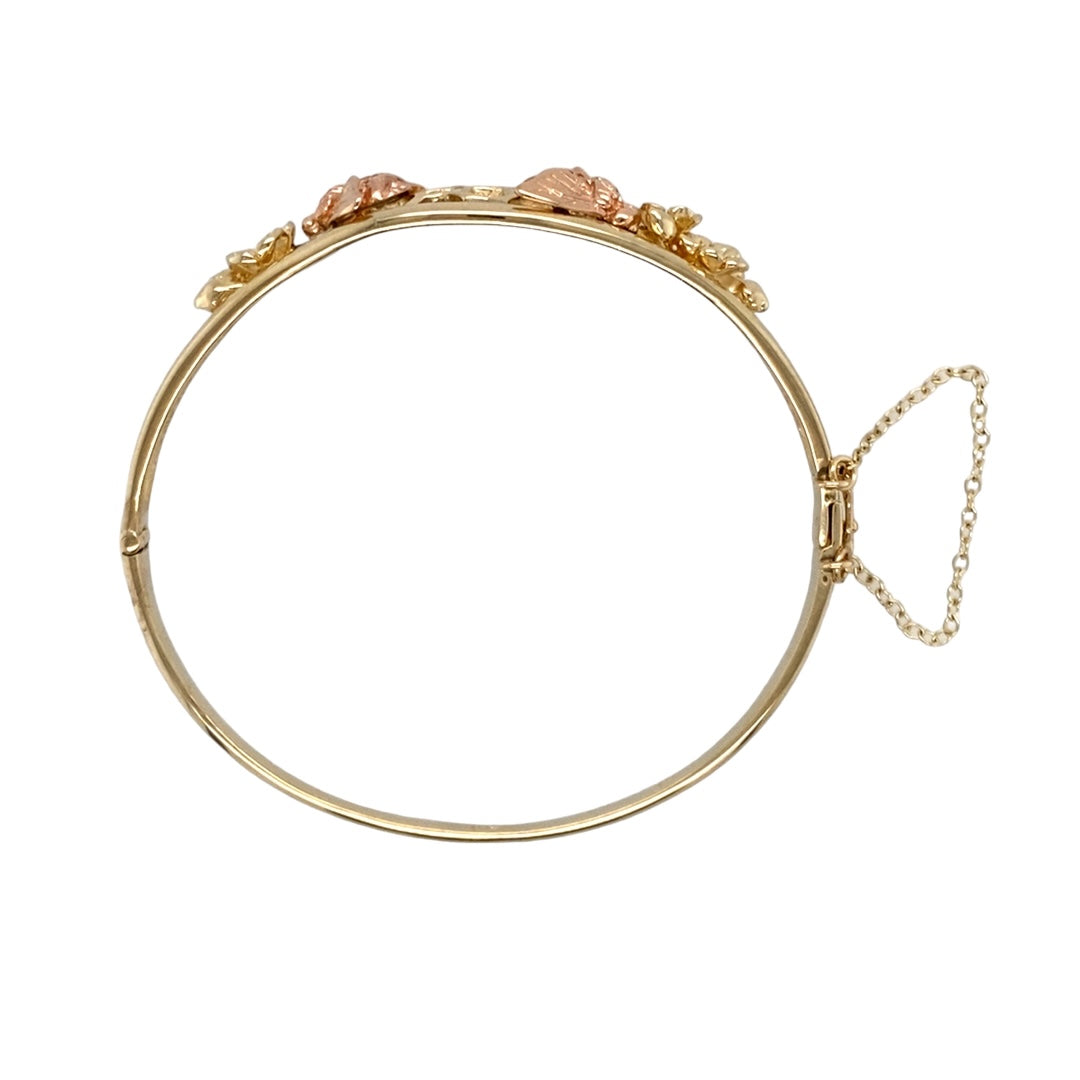 This pre-owned 9ct yellow and rose gold Clogau honeycomb and bee bangle is a charming and intricate piece, symbolising nature's beauty.
