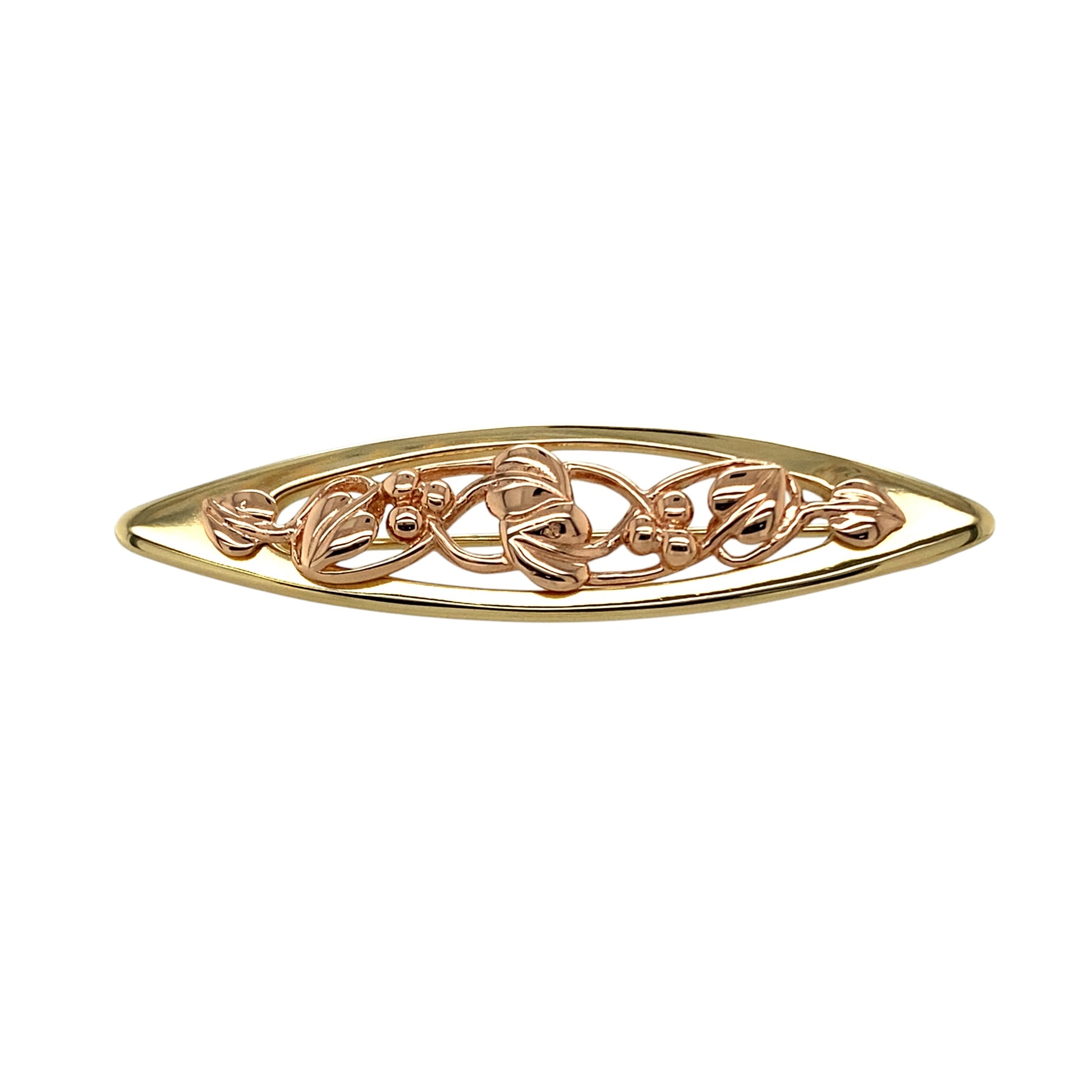 Design: The brooch showcases the iconic Tree of Life motif, symbolising growth, strength, and connection. The flowing vine design combines yellow and rose gold elements, creating rich contrast and visual depth.