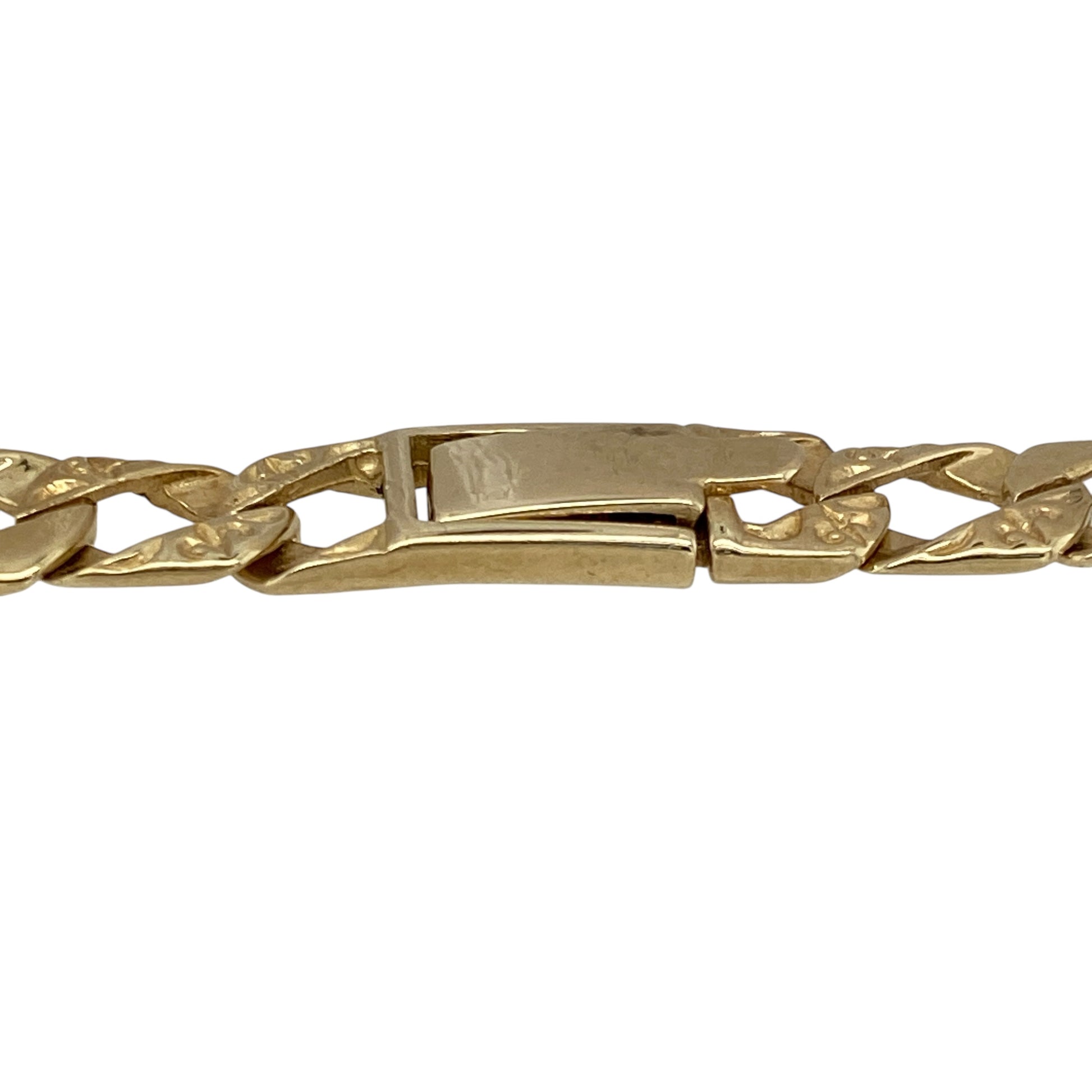 Material: Made from 9-carat yellow gold, the polished and textured finish enhances the bold link design and the brilliance of the stones.