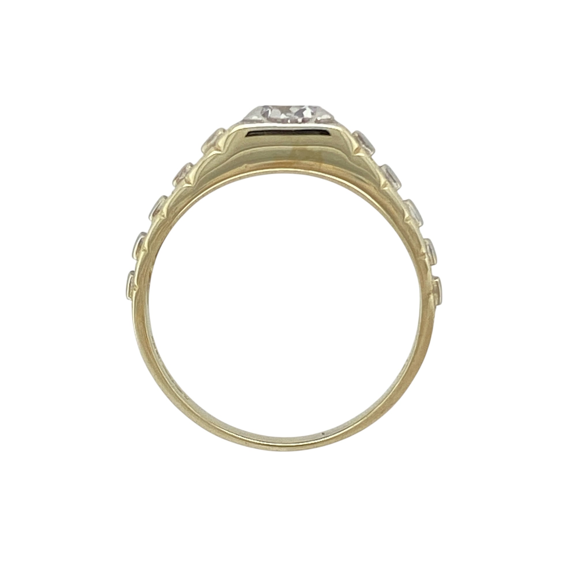 Design: The ring features a striking watch-inspired design highlighted by a 7mm diameter cubic zirconia stone at the center, creating a bold and brilliant focal point. The combination of yellow and white gold adds contrast and a contemporary edge to the piece.