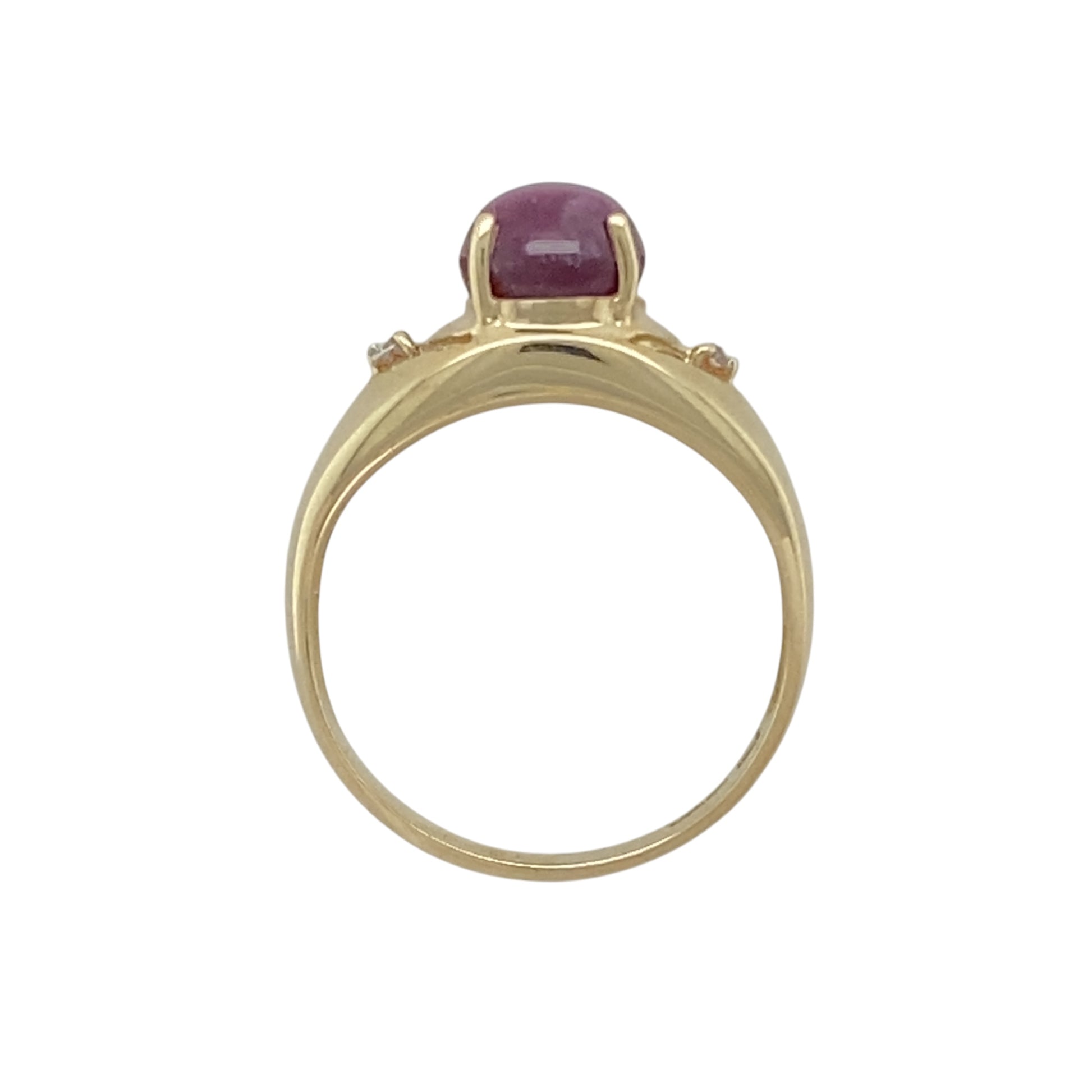 Add a touch of elegance and colour to your jewellery collection with this pre-owned 9ct yellow gold diamond & purple stone set ring, featuring: