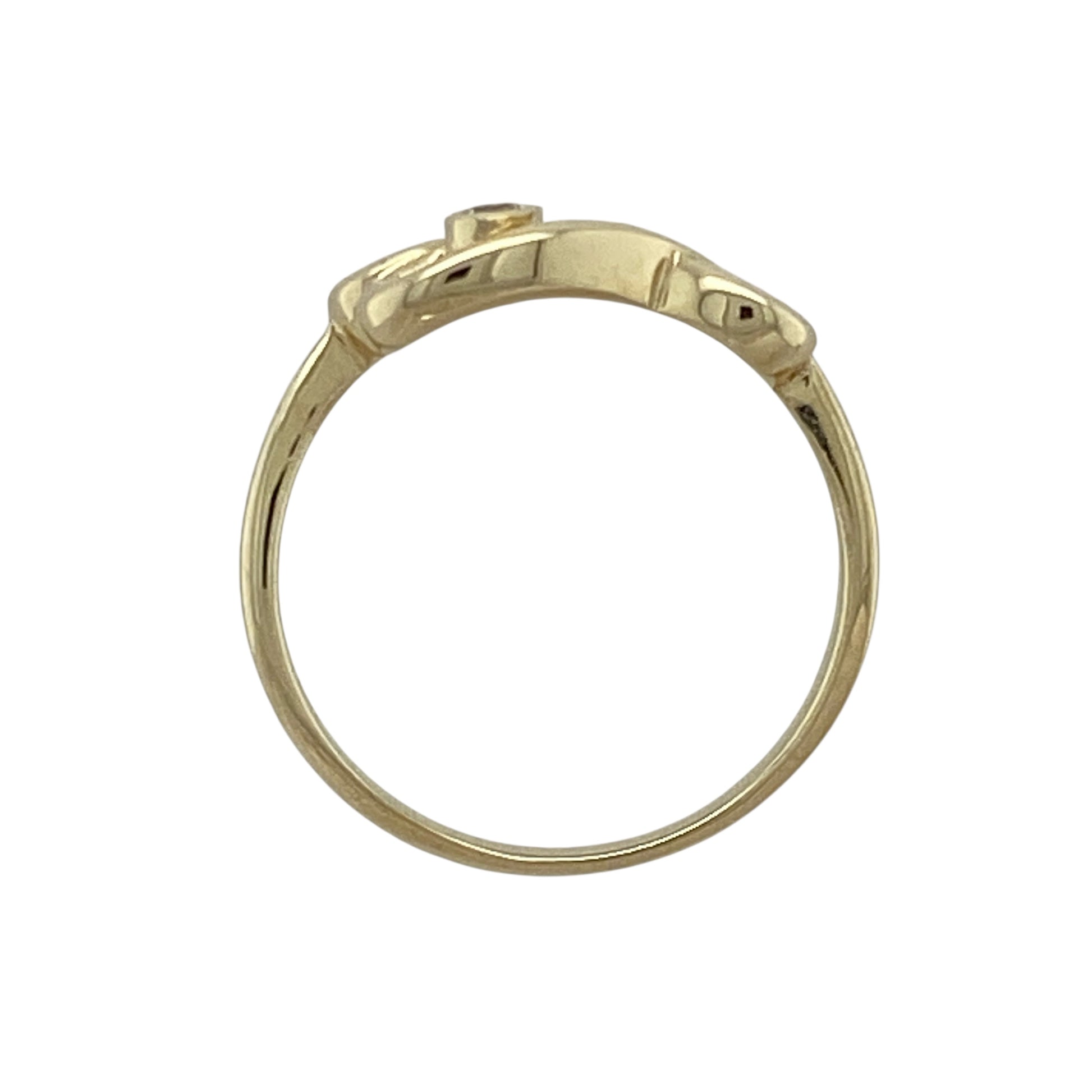 Bring heritage design and subtle sparkle to your jewellery collection with this pre-owned 9ct yellow gold Clogau Celtic swirl ring, featuring elegant curves and diamond accents—perfect for everyday elegance with symbolic meaning.