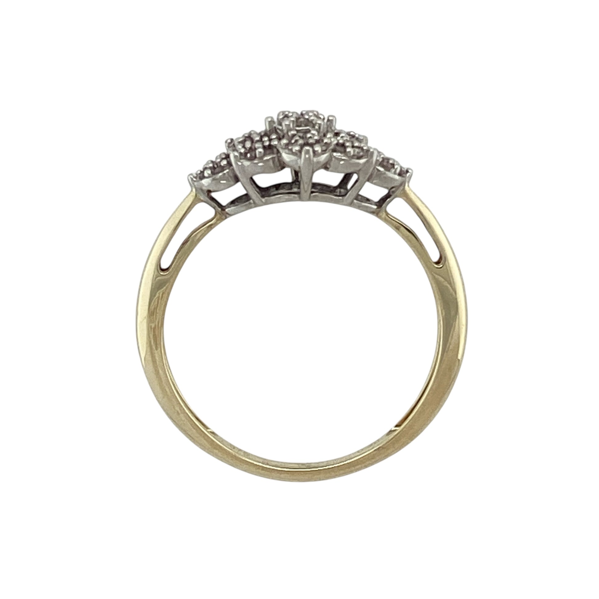 Bring delicate sparkle and timeless romance to your collection with this pre-owned 9ct yellow gold and diamond set flower cluster ring, offering a refined design and elegant presence—perfect for adding a touch of feminine charm to any look.
