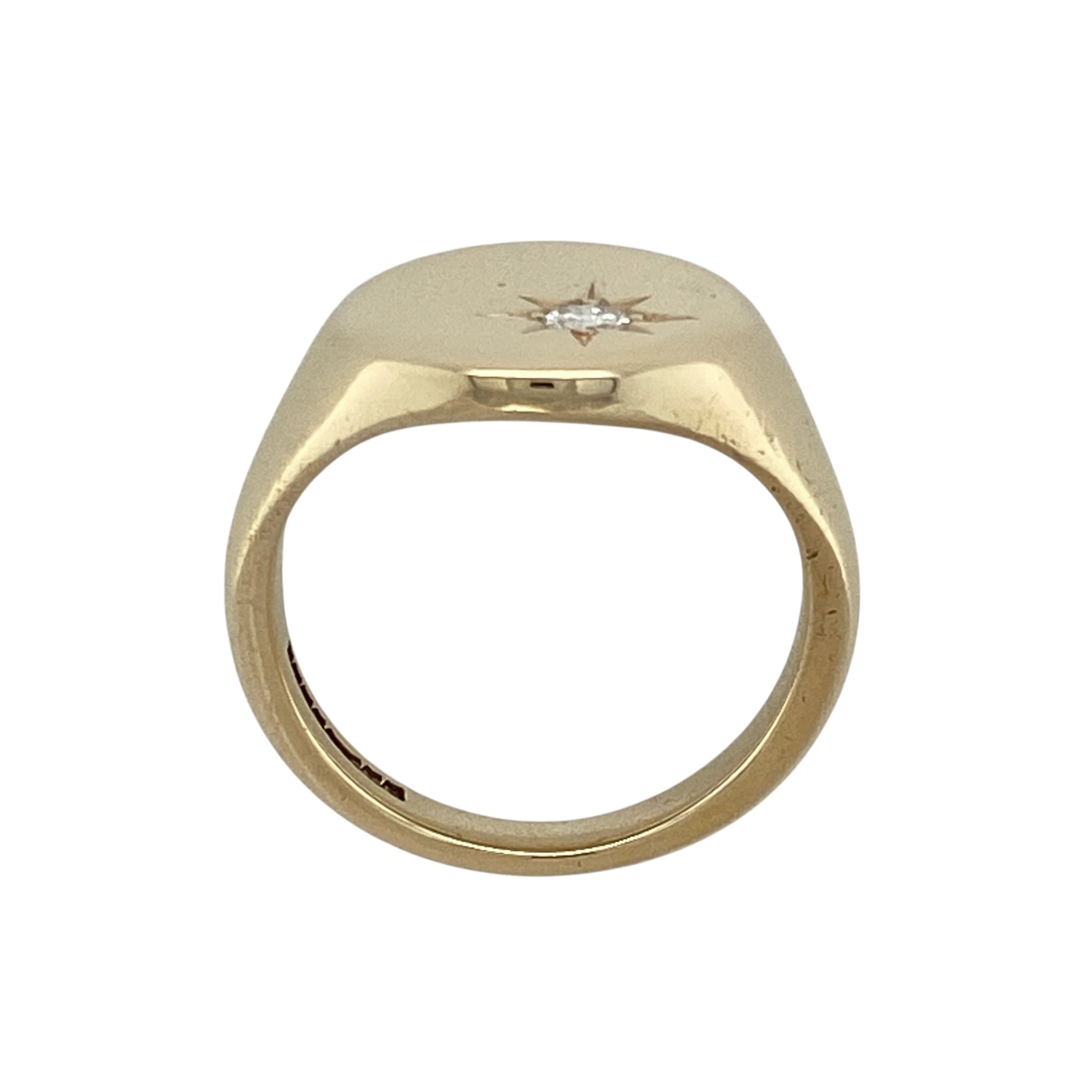 Bold and distinguished, this pre-owned 9ct gold oval signet ring features a refined design with a sparkling diamond accent—perfect for classic styling with a luxurious edge.