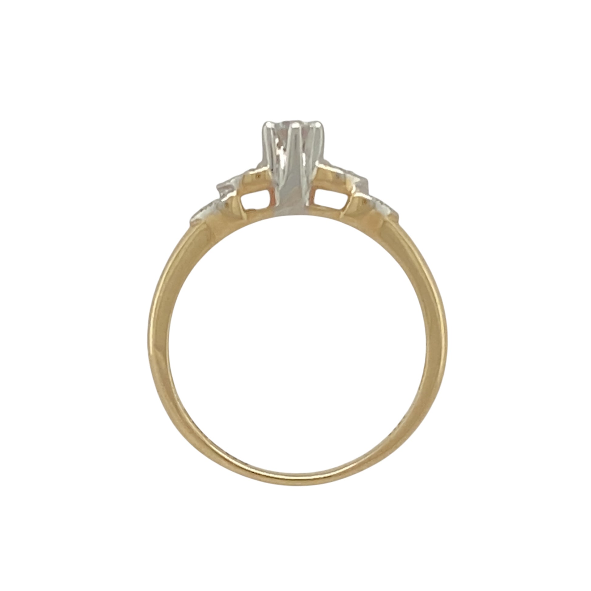 Material: Made from 9-carat yellow and white gold, offering a refined and polished finish that highlights the diamond’s brilliance.