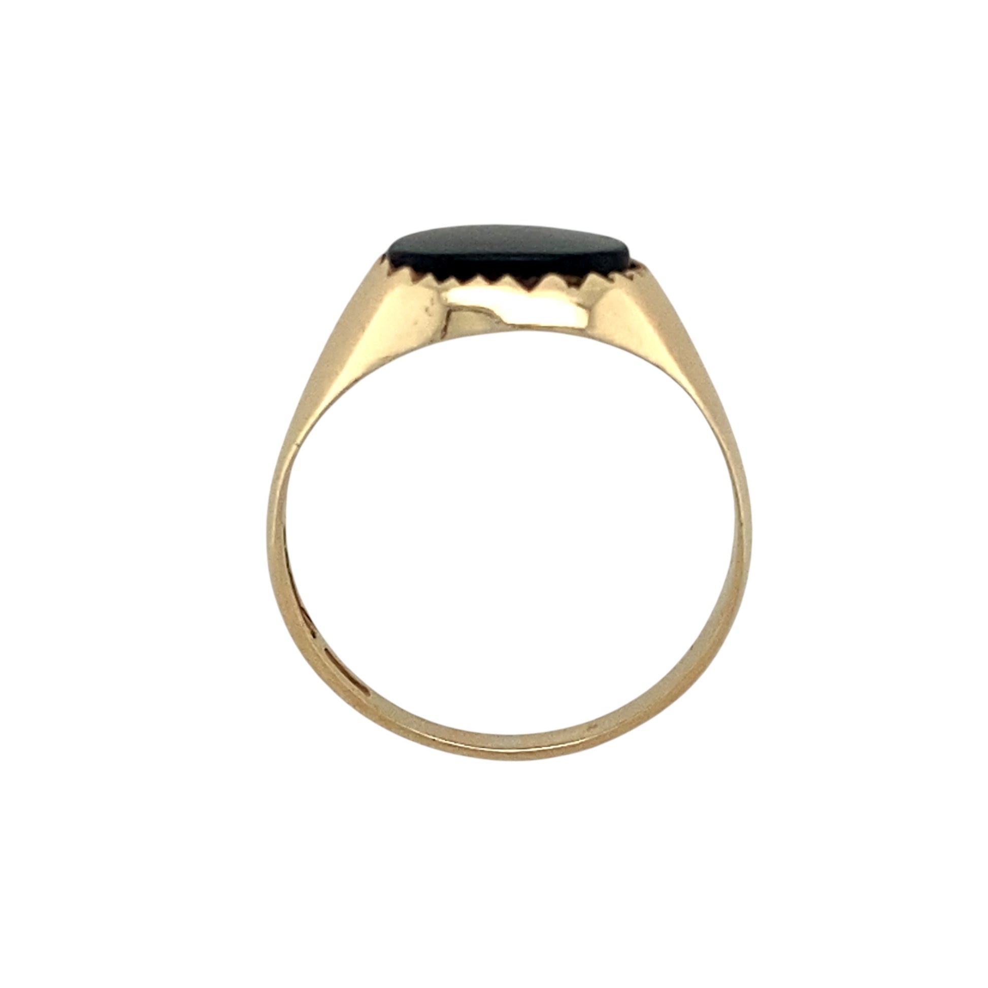 Preowned 9ct Yellow Gold & Onyx Set Signet Ring in size Q with the weight 2.72 grams. The onyx stone is 10mm by 8mm