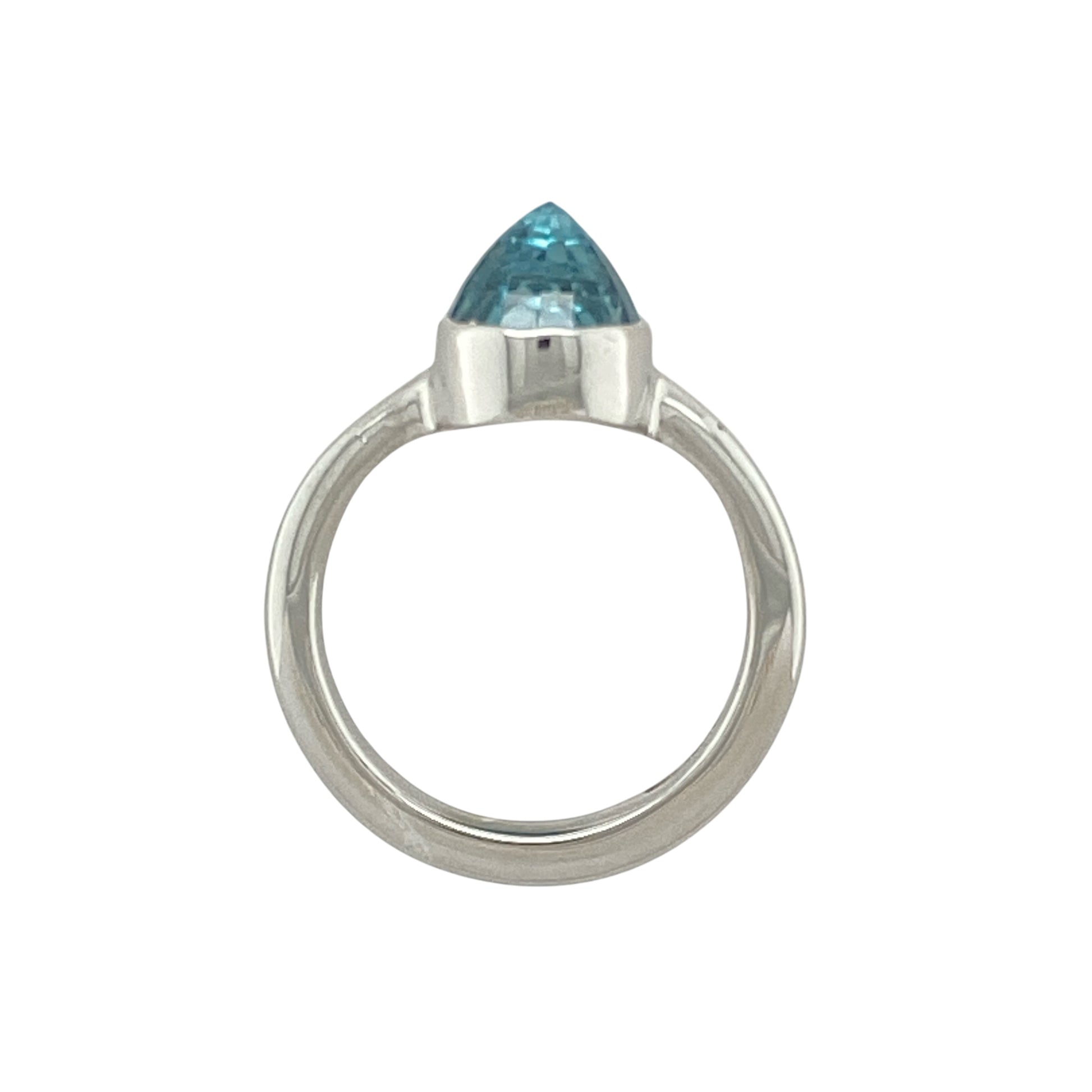 Design: A modern dress ring centred around a bold blue crystal-cut stone with a pointed, outward-facing dome, offering an eye-catching and sculptural silhouette.