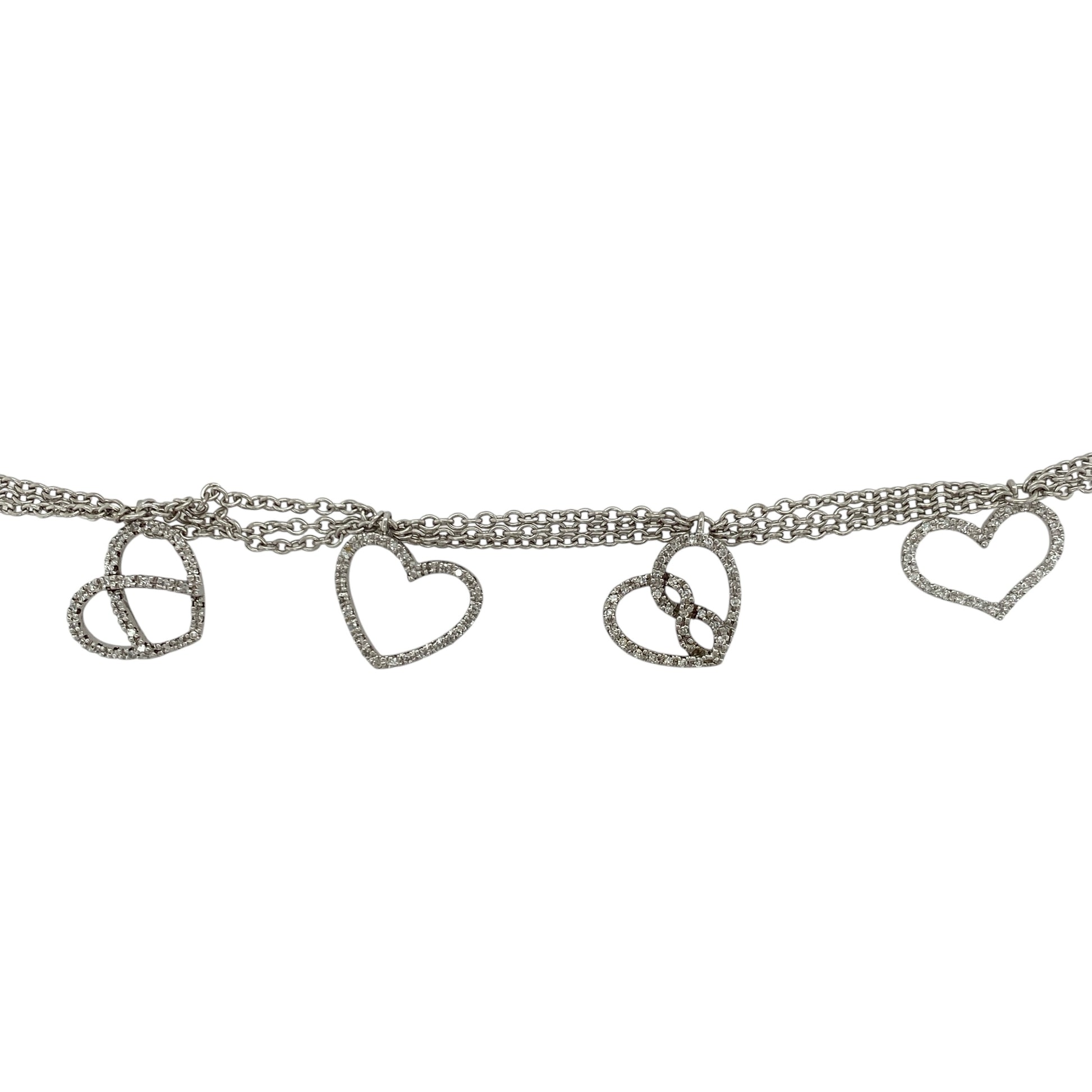 9ct White Gold & Diamond Set Heart Charms 7" Bracelet