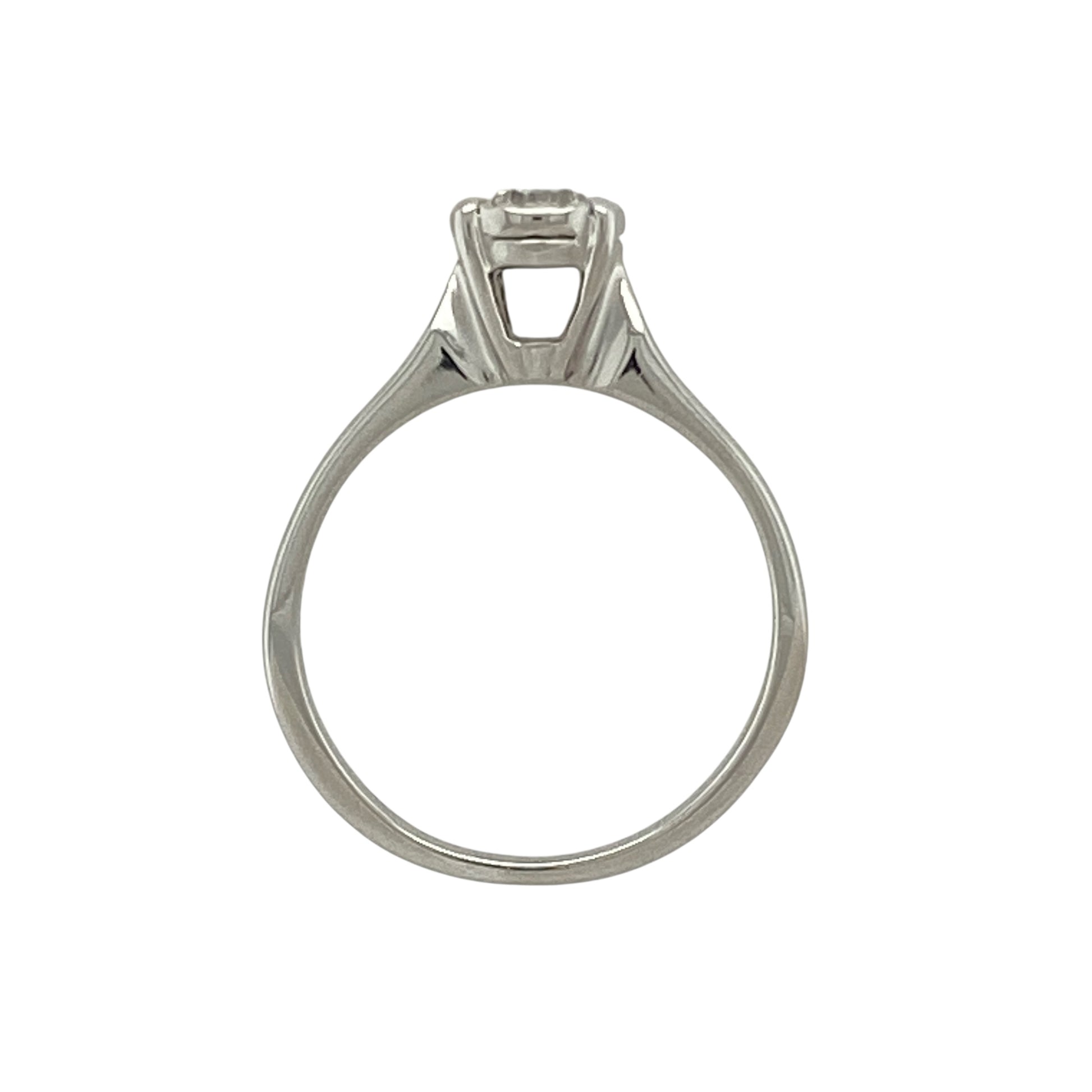 Design: This ring features a brilliant-cut diamond of approximately 0.25ct, presented in an illusion setting that enhances the stone’s size and sparkle.