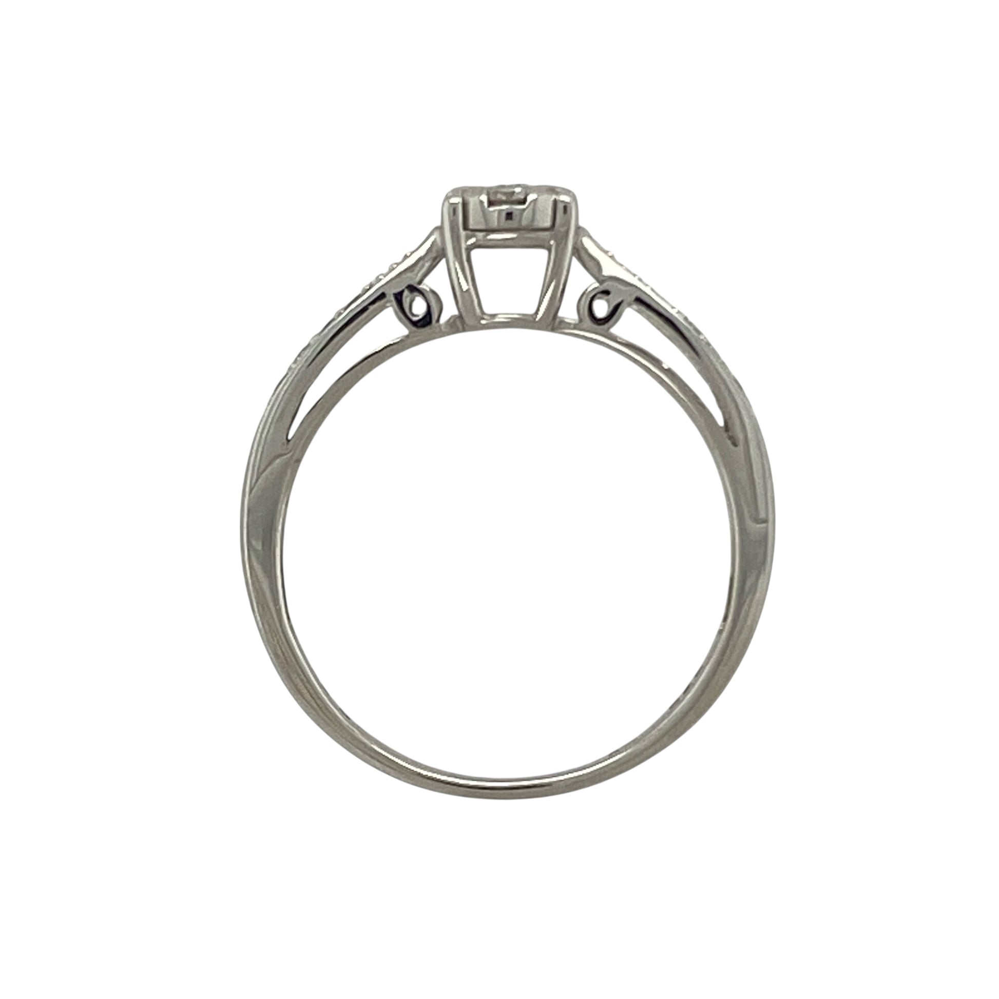 Bring timeless sparkle and elegant style to your collection with this pre-owned 9ct white gold diamond cluster illusion-set solitaire ring—a refined design that captures brilliance and sophistication.
