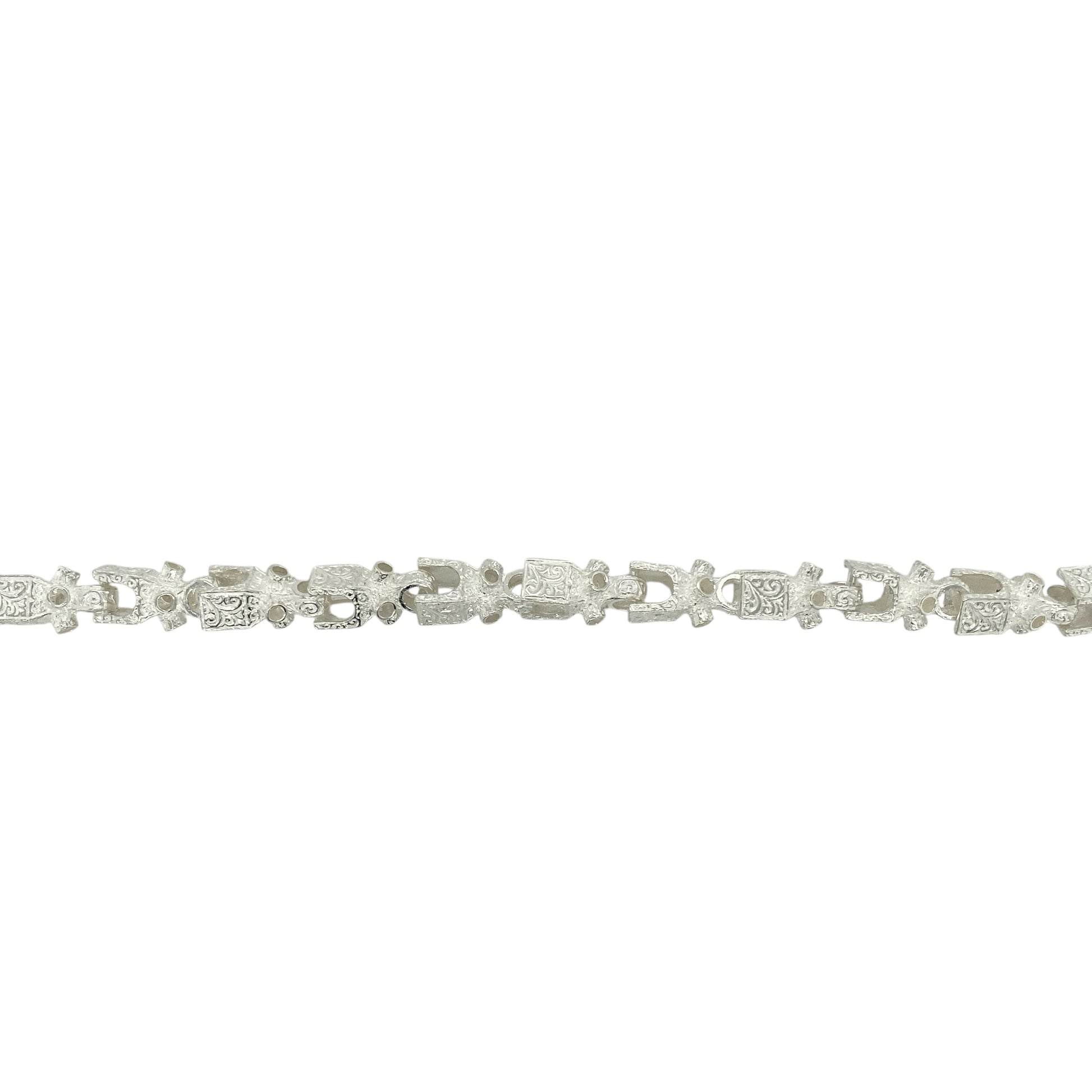 Material: Made from solid 925 sterling silver, the polished and detailed finishes enhance the chain’s dimensional appearance and reflective quality.