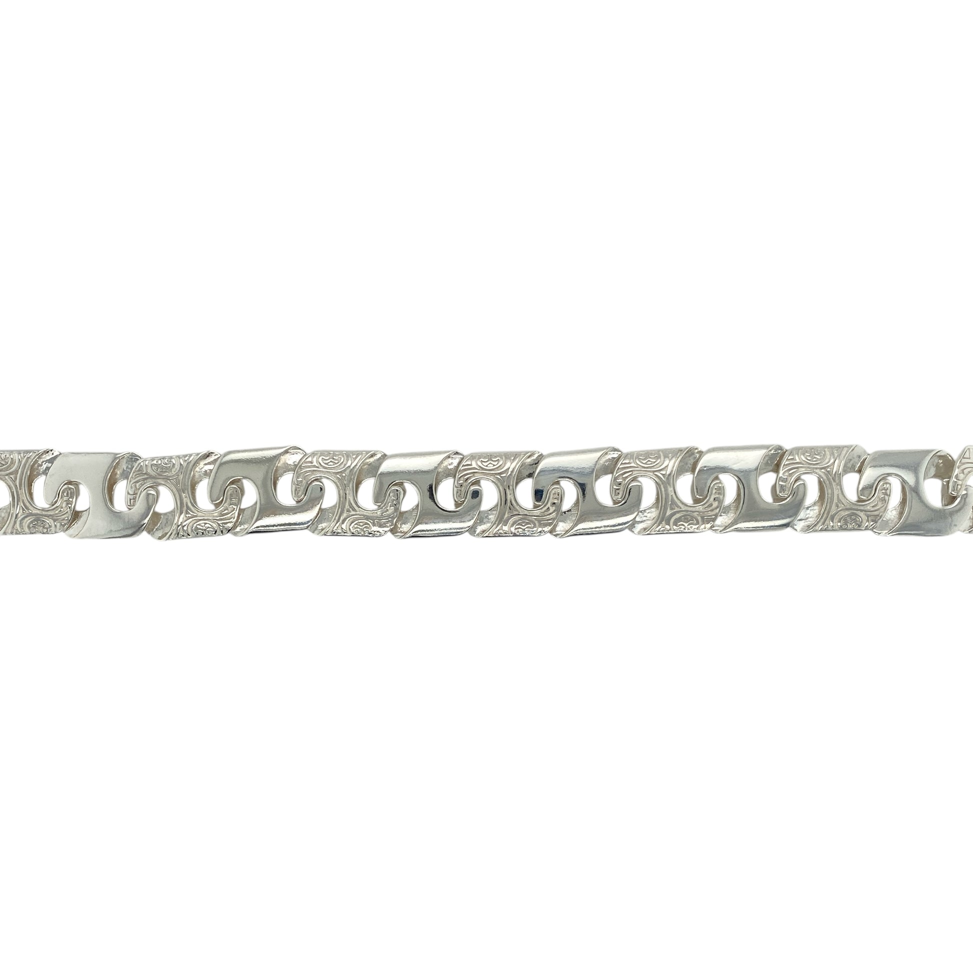 Design: Featuring 12mm wide Bali-style links with detailed Celtic-inspired patterning, this bracelet blends cultural symbolism with bold, decorative design.