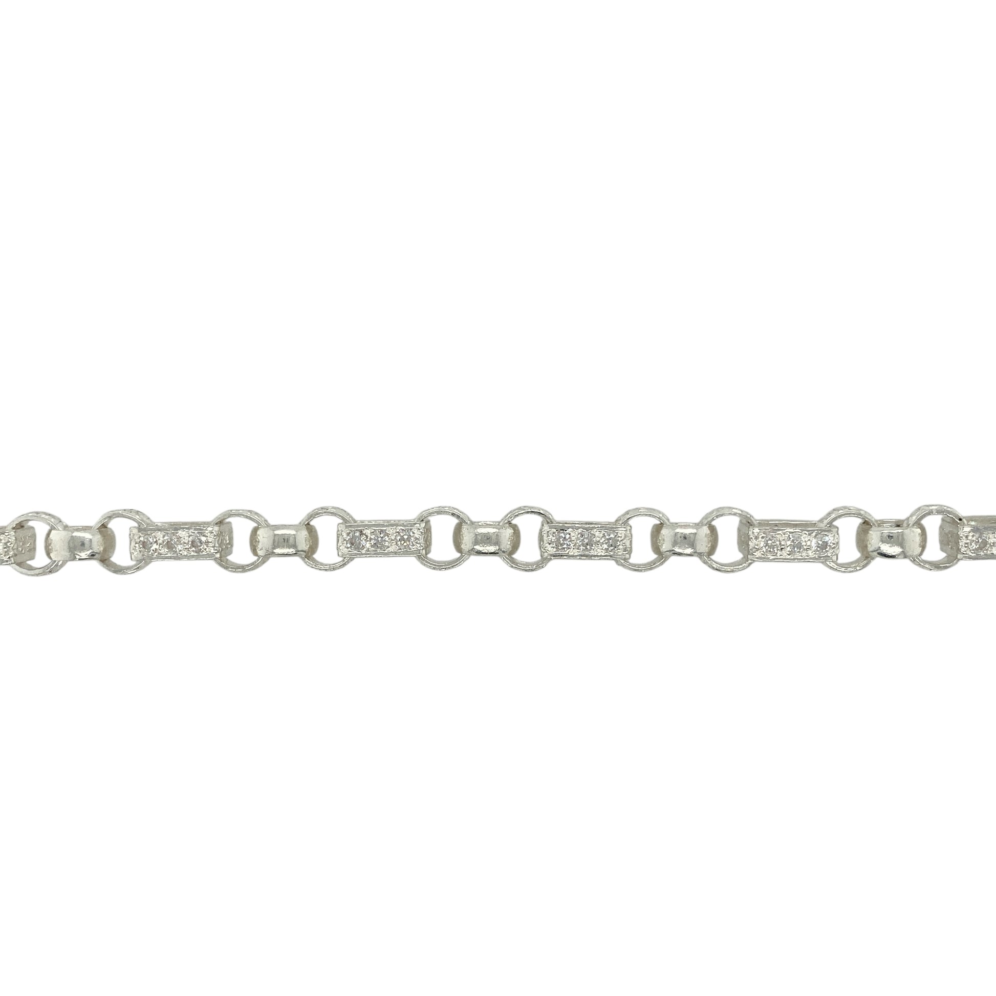 Design: Featuring 8mm wide gypsy-style links with alternating patterns and cubic zirconia accents, this chain combines traditional design with a touch of brilliance.