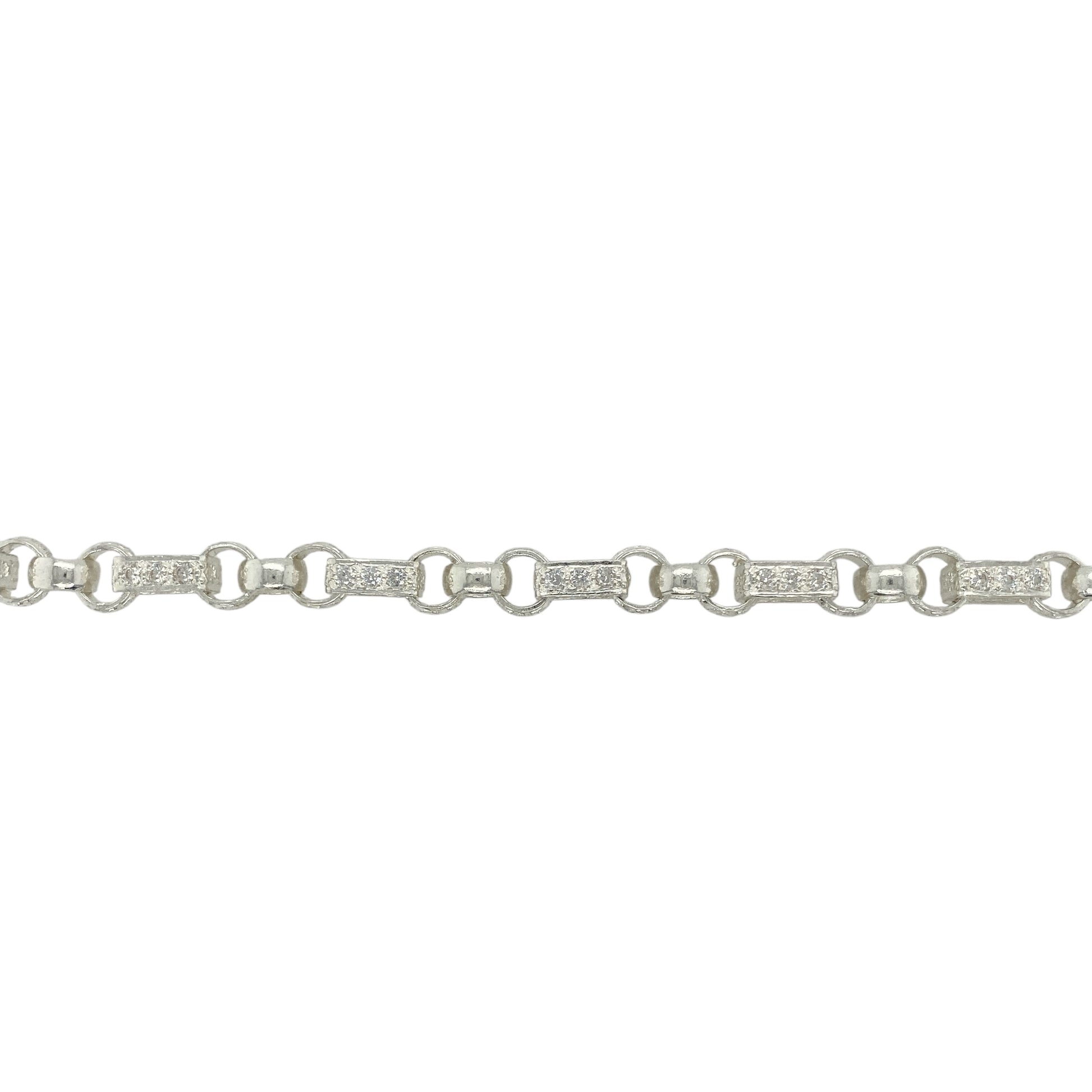 Design: Featuring 8mm wide links in a traditional gypsy style with inset cubic zirconia stones, this bracelet blends classic design with elegant shimmer.