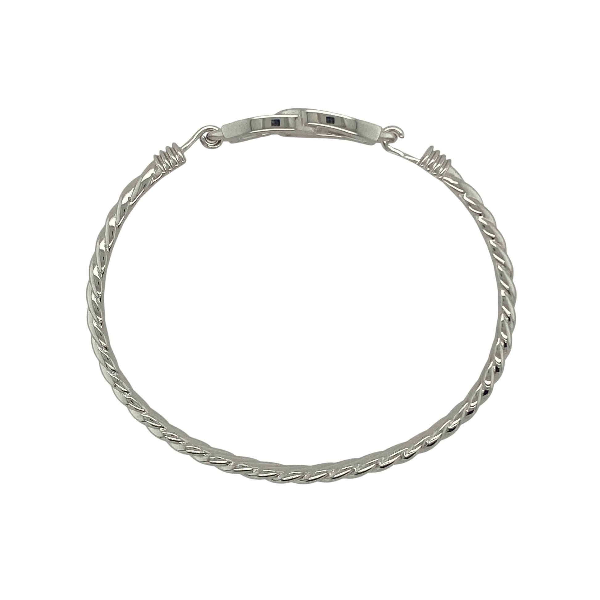Design: The bangle features a 12mm high front with two interlocking horseshoes, each accented with sparkling cubic zirconia stones for an elegant and eye-catching finish.