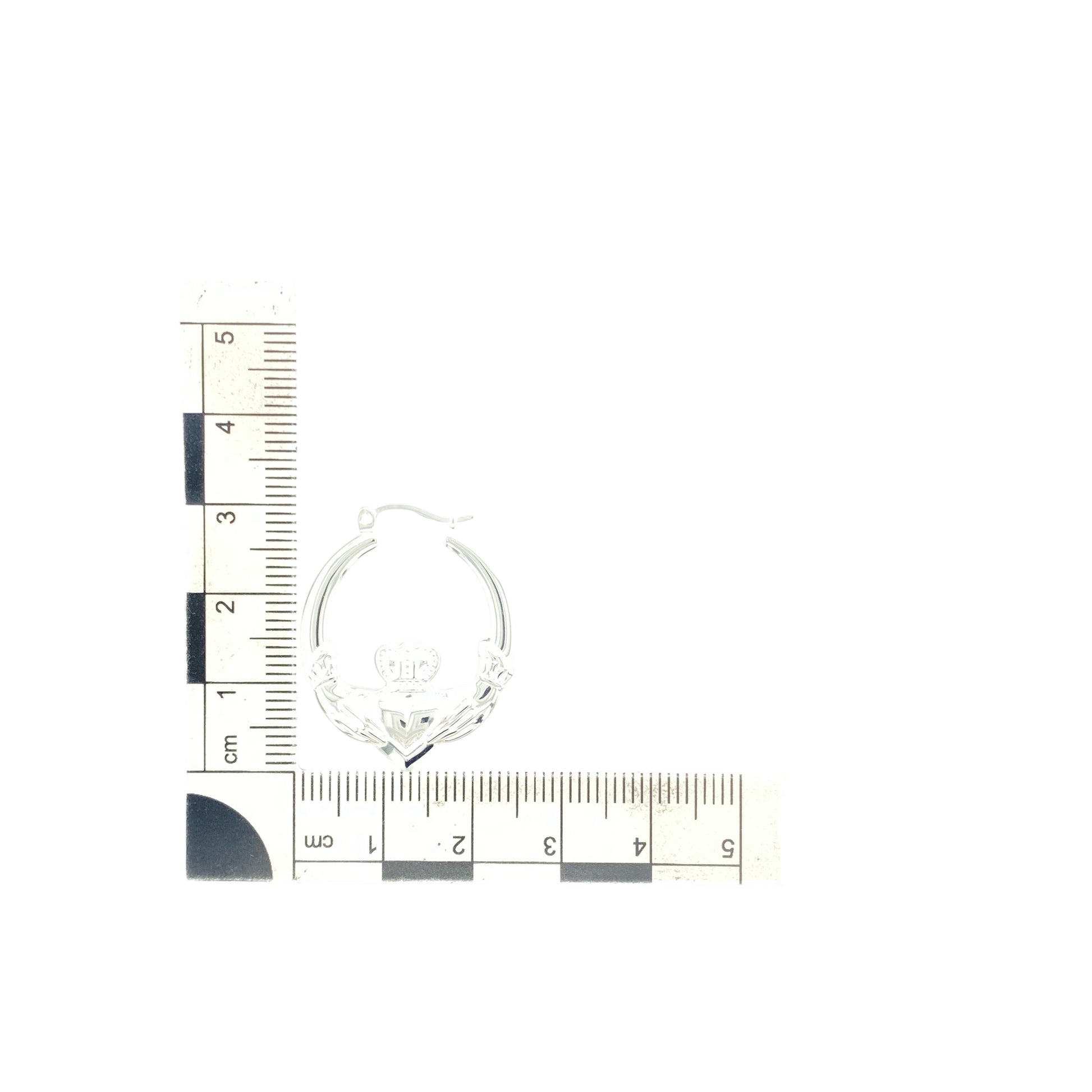 Design: The earrings feature a large round creole style with a detailed Claddagh motif, measuring approximately 25mm in diameter. The Claddagh symbol represents love, loyalty, and friendship, adding depth and sentiment to their classic design.