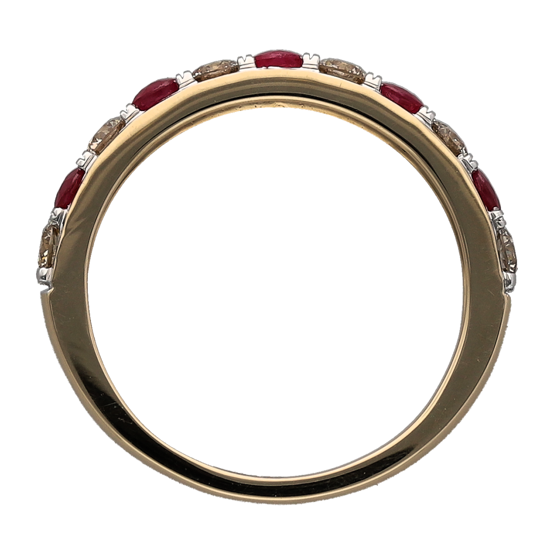 Bring bold elegance and vibrant sparkle to your jewellery collection with this new 9ct yellow gold diamond and ruby band ring—a classic piece with striking colour and refined brilliance.