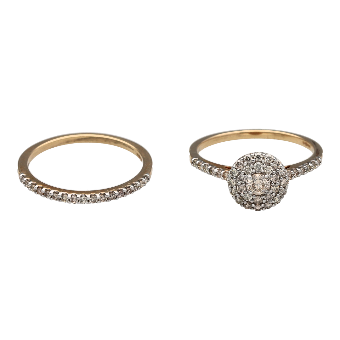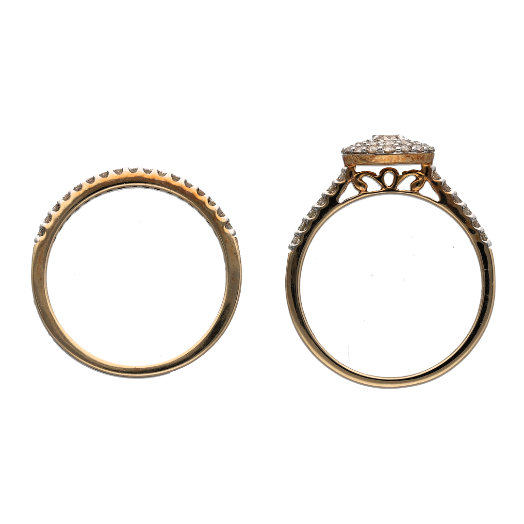 9ct Gold & Diamond Set Double Halo Wedding Band Set