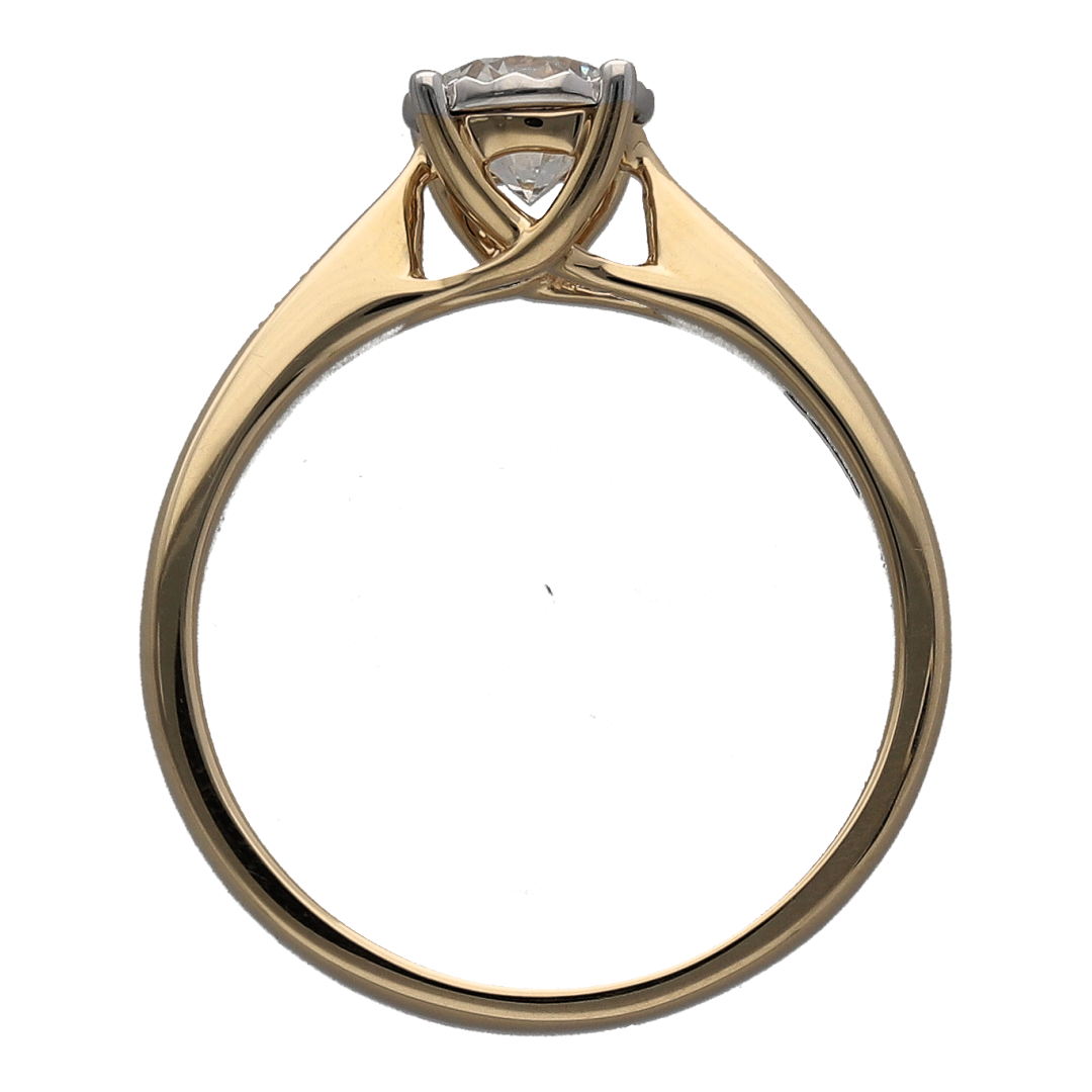 New 9ct Yellow Gold & Diamond Set Solitaire Ring in size P with white gold tipped claws. The ring contains a real natural diamond which is 0.76ct but looks like 1.50ct due to the white gold setting. The diamond is approximate clarity Si