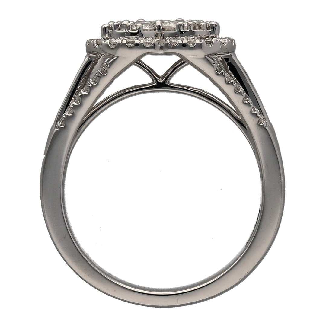 Material: Made from 9-carat white gold, the polished finish provides a sleek, cool-toned backdrop that enhances the sparkle of the diamonds.