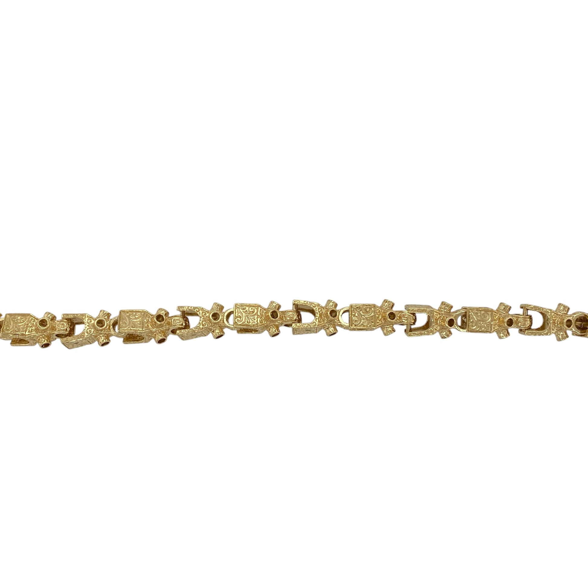 Design: Featuring 7mm wide rectangular Lego-style links with detailed engraved patterning, this bracelet offers modern structure with subtle vintage influence.