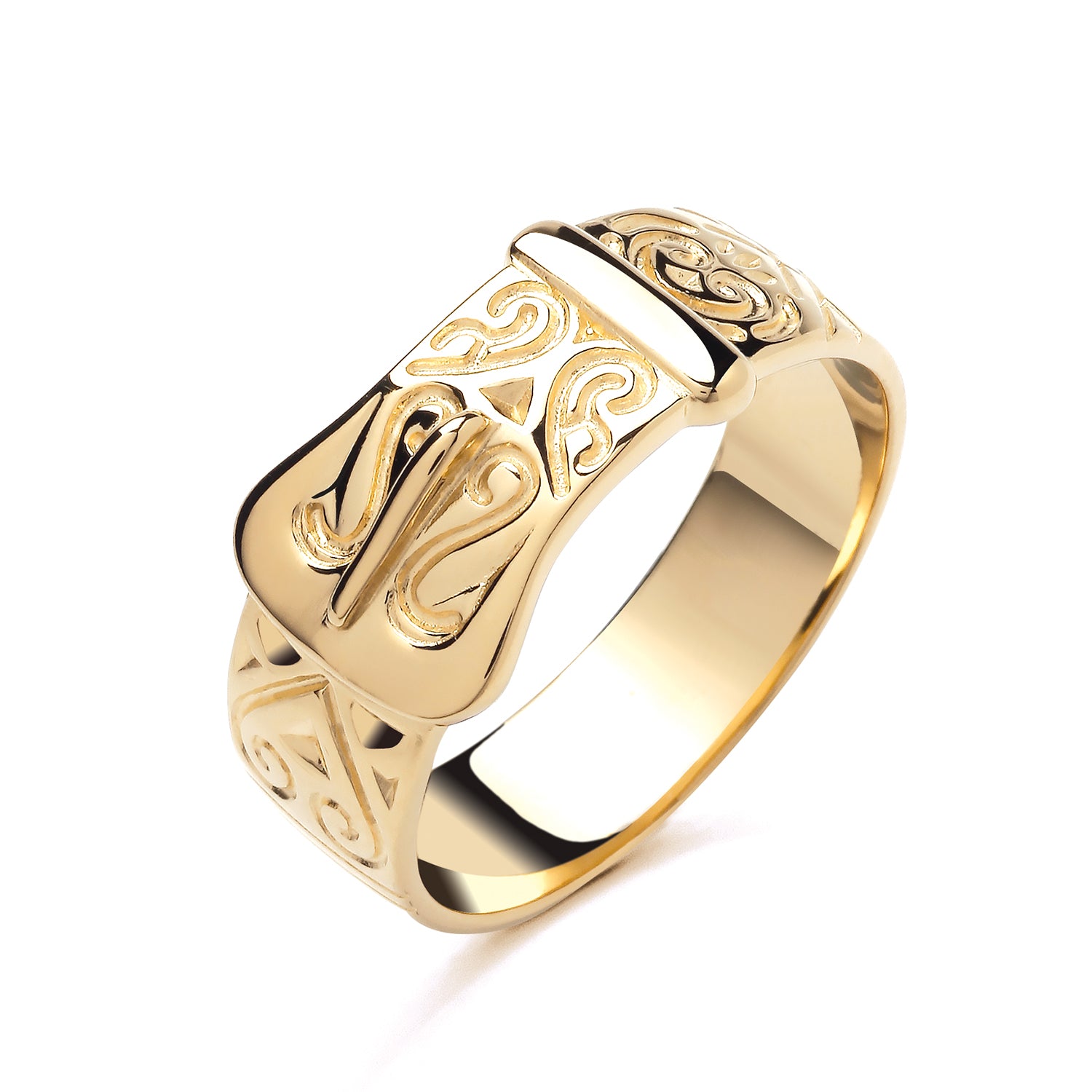 New 925 Silver Gold Plated Patterned Buckle Ring in various sizes