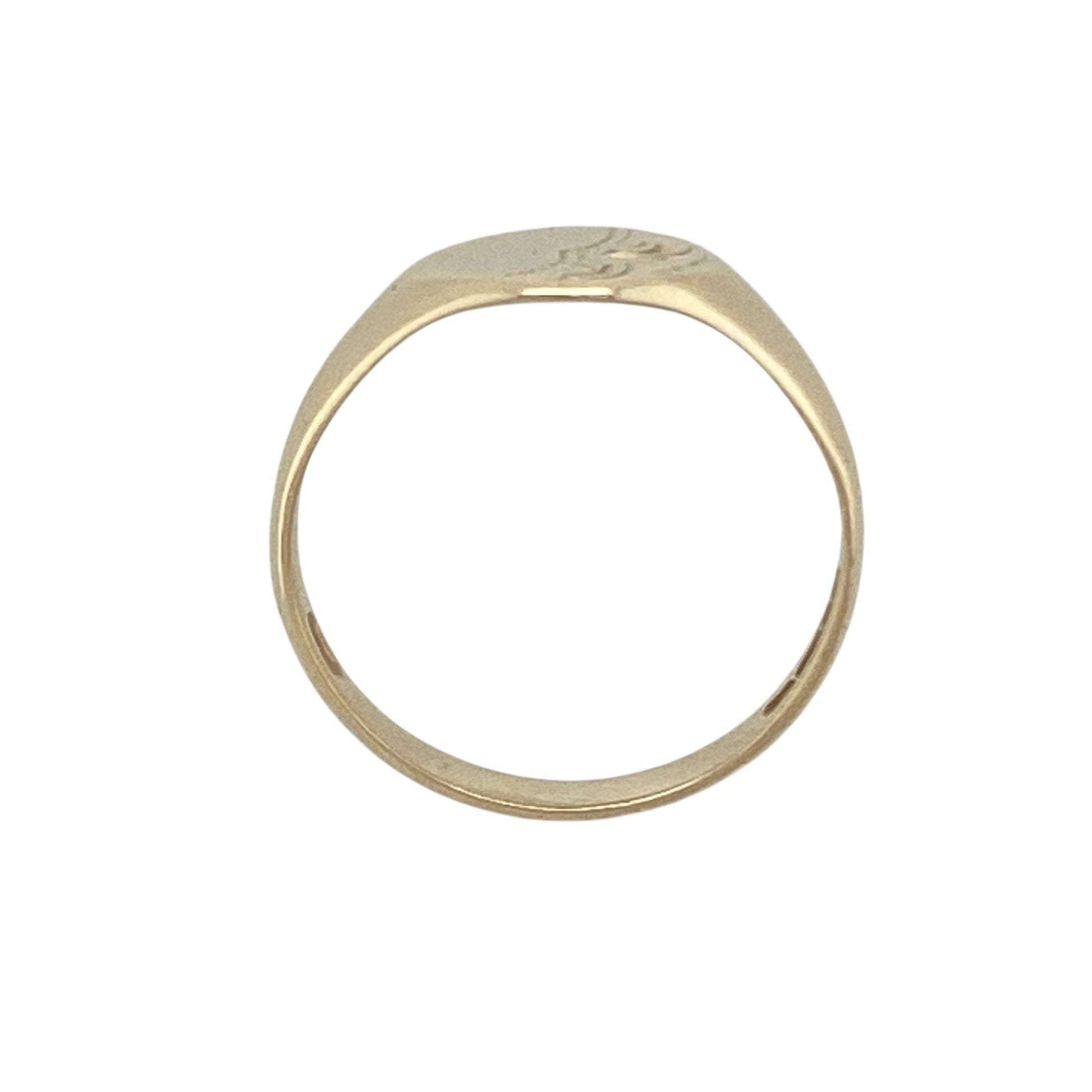 Bring classic character and refined detail to your collection with this pre-owned 9ct yellow gold patterned oval signet ring—an elegant piece with timeless appeal.