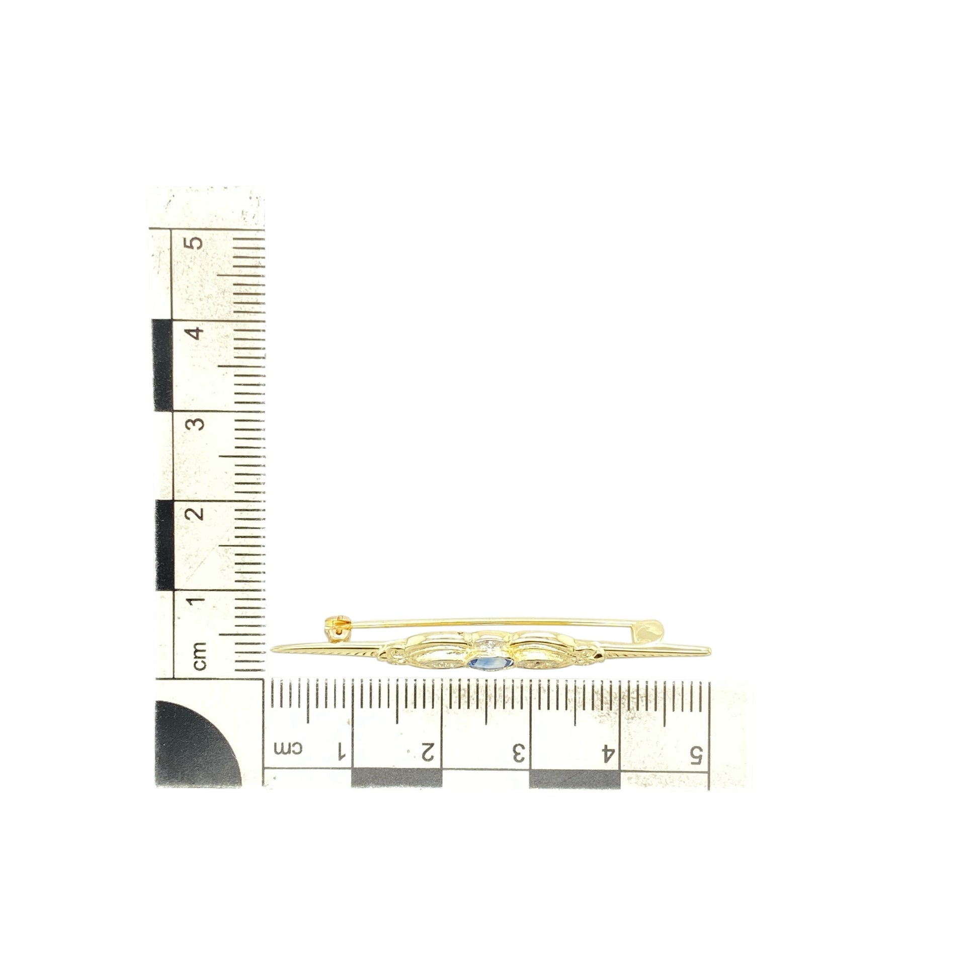 Design: The brooch features an oval blue sapphire measuring approximately 5mm by 3mm, accented with sparkling diamond details to create a timeless and elegant focal point.