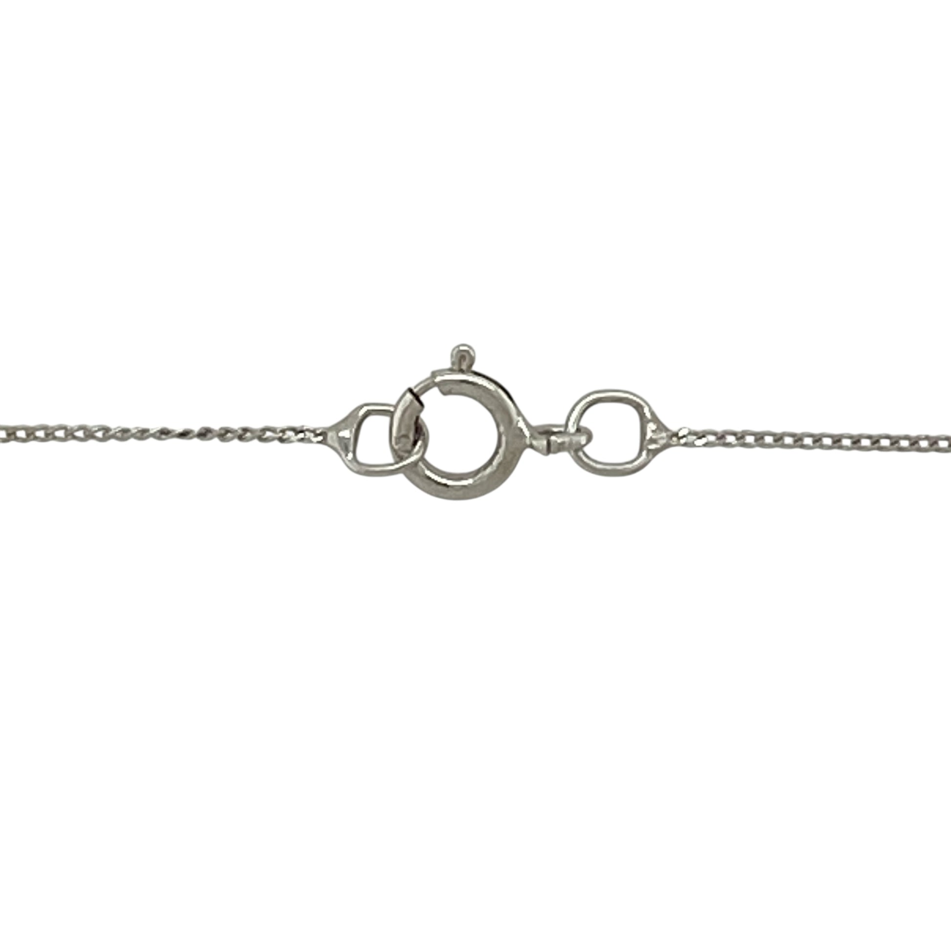 Pre-owned 9ct White Gold & Black Stone Teardrop Pendant on an 16" fine curb chain Necklace with the weight 0.80 grams. The pendant is 2.4cm long including the bail