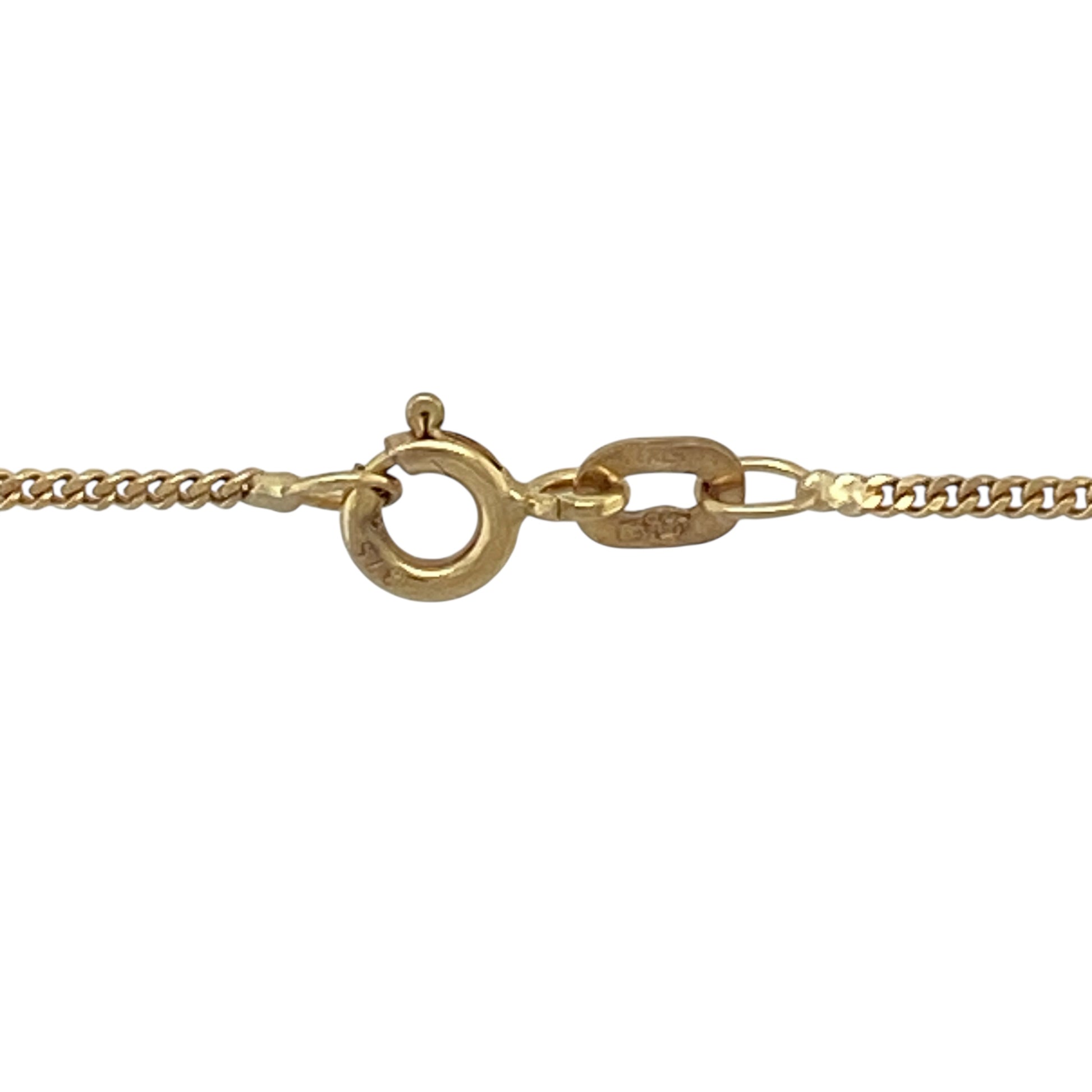 Material: Made from 9-carat yellow gold, the warm tone enhances the detailing of the pendant and complements the 16" curb chain for a cohesive, elegant finish.