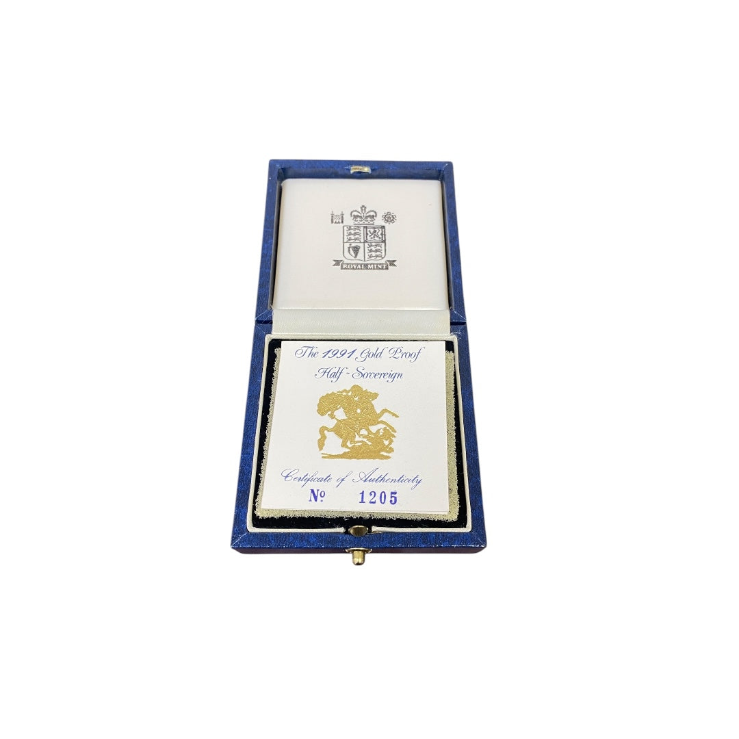 A 1991 Queen Elizabeth II 22ct Gold Boxed Half Sovereign with a George and the Dragon reverse. Just 3,588 proof Half Sovereigns were issued in 1991, making this among the lowest mintage Half Sovereigns