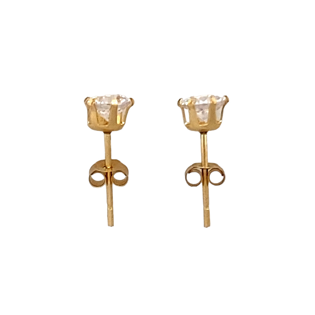 New 9ct Gold 4mm Cubic Zirconia Stud Earrings with the weight 0.40 grams. The backs of the studs are 9mm long