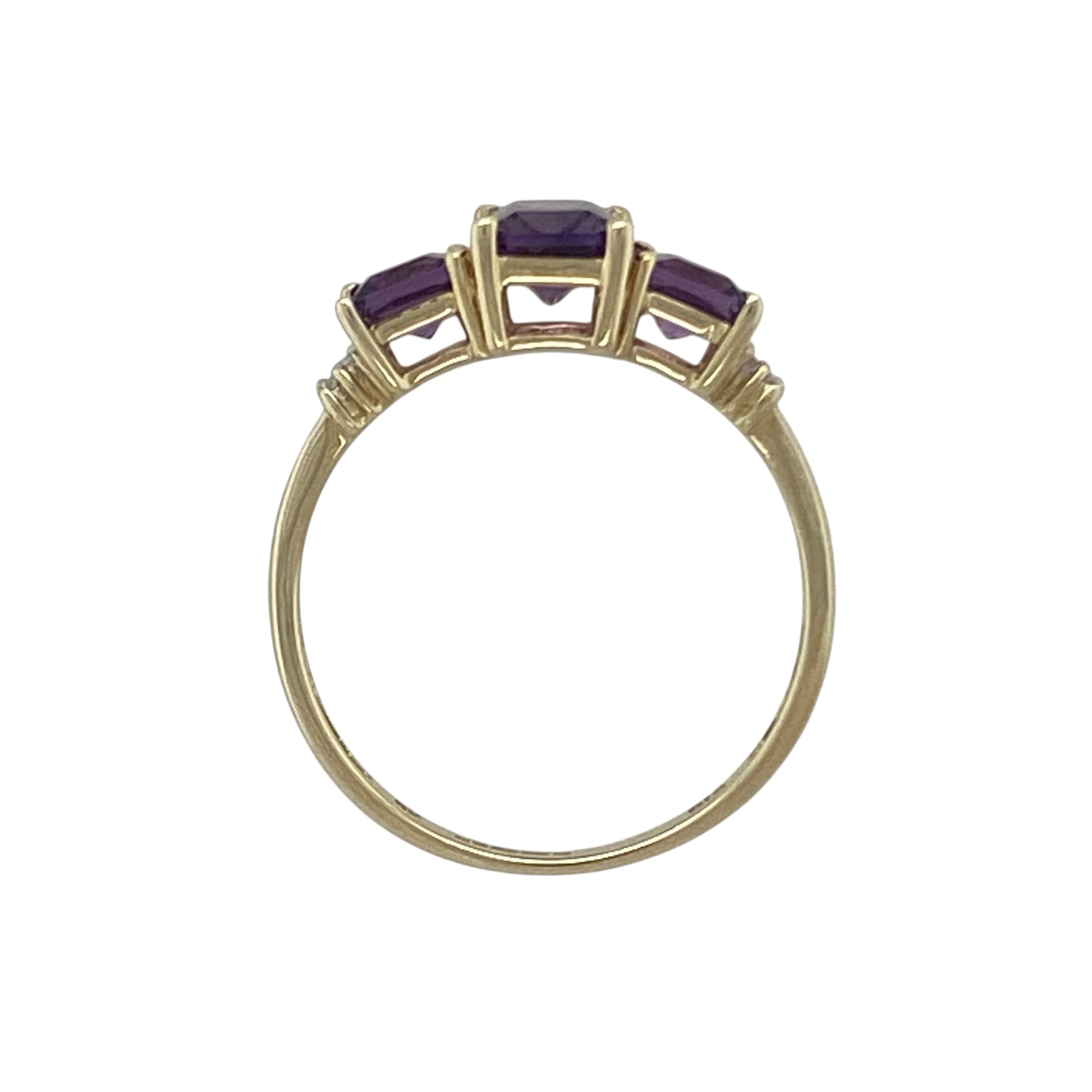 9ct Gold Diamond & Amethyst Set Trilogy Ring