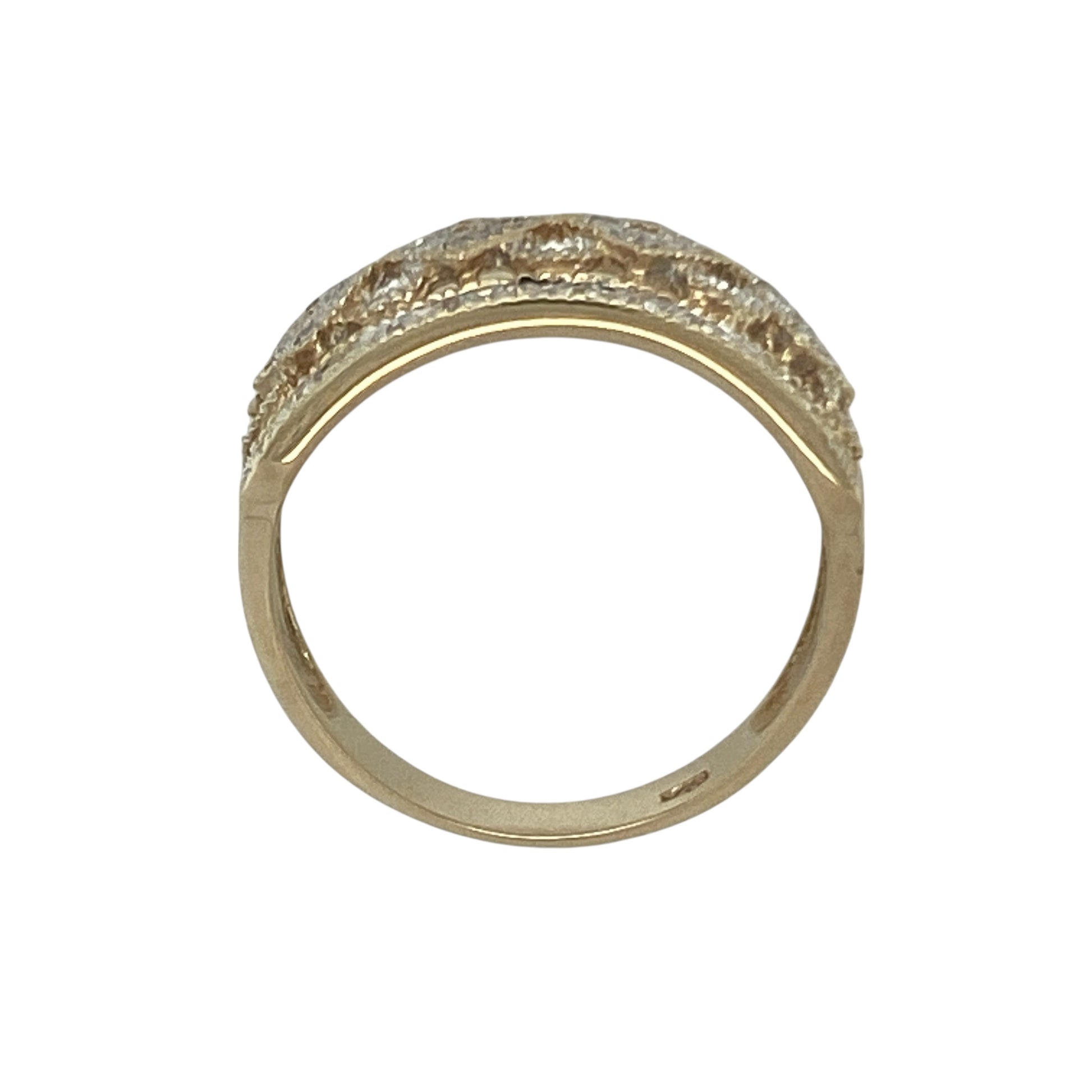 9ct Gold & Diamond Set Open Patterned Wide Ring