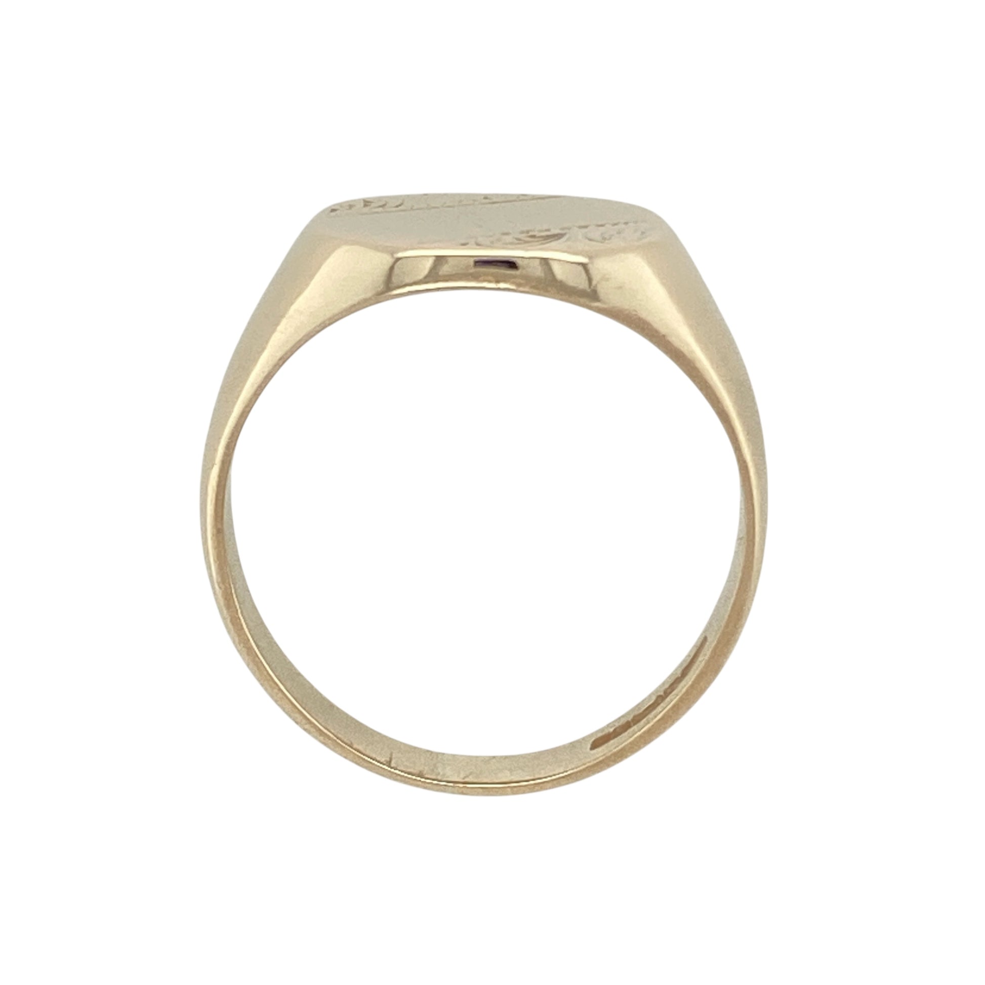 Design: The ring features a 14mm high front with an engraved patterned finish, adding depth and detail to the traditional signet style.
