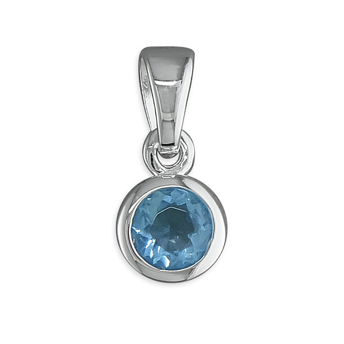 New 925 Silver December Birthstone Pendant on either an 18" or 20" curb chain. The pendant is set with a synthetic blue turquoise stone which is 5mm diameter. The pendant is 14mm long including the bail
