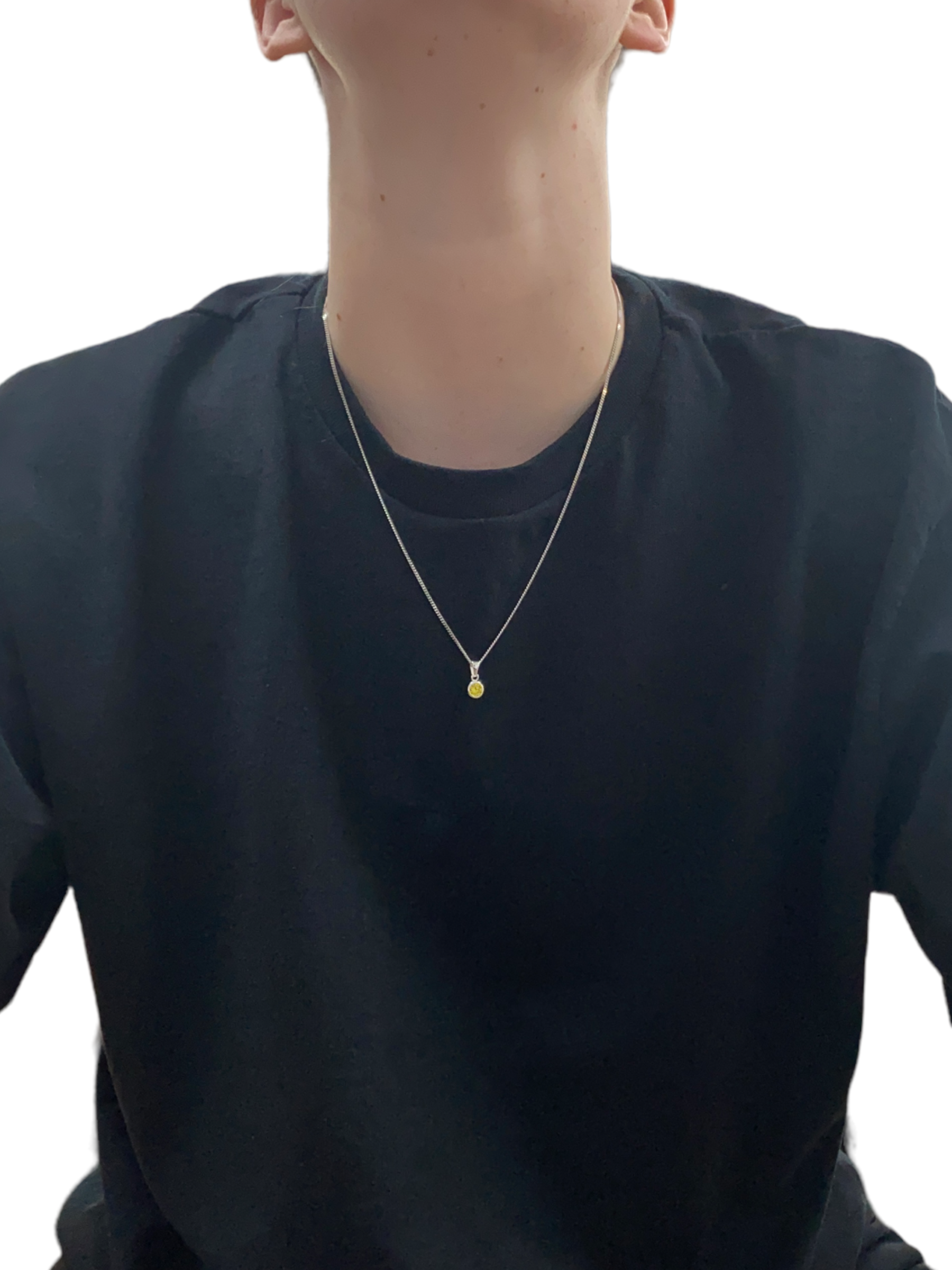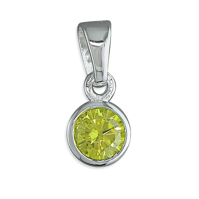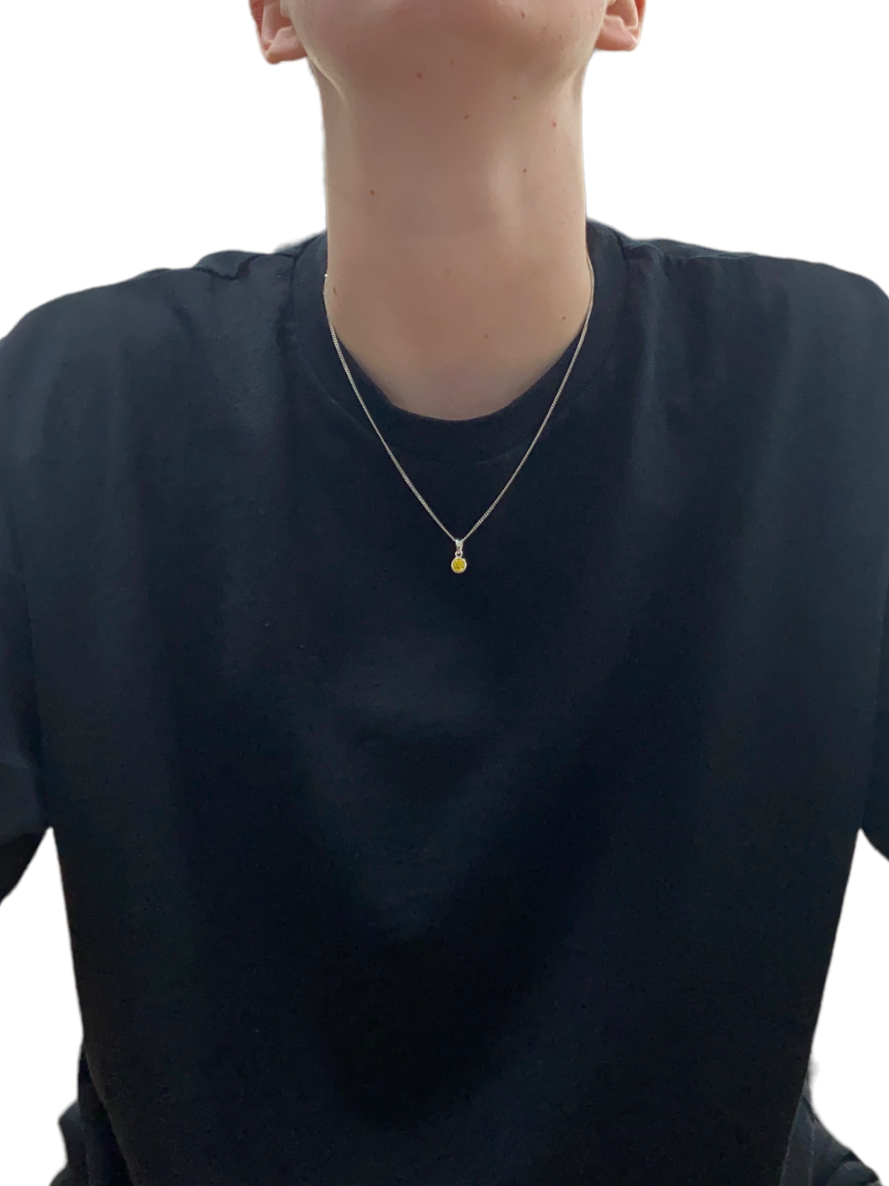 New 925 Silver November Birthstone Pendant on either an 18" or 20" curb chain. The pendant is set with a synthetic citrine stone which is 5mm diameter. The pendant is 14mm long including the bail