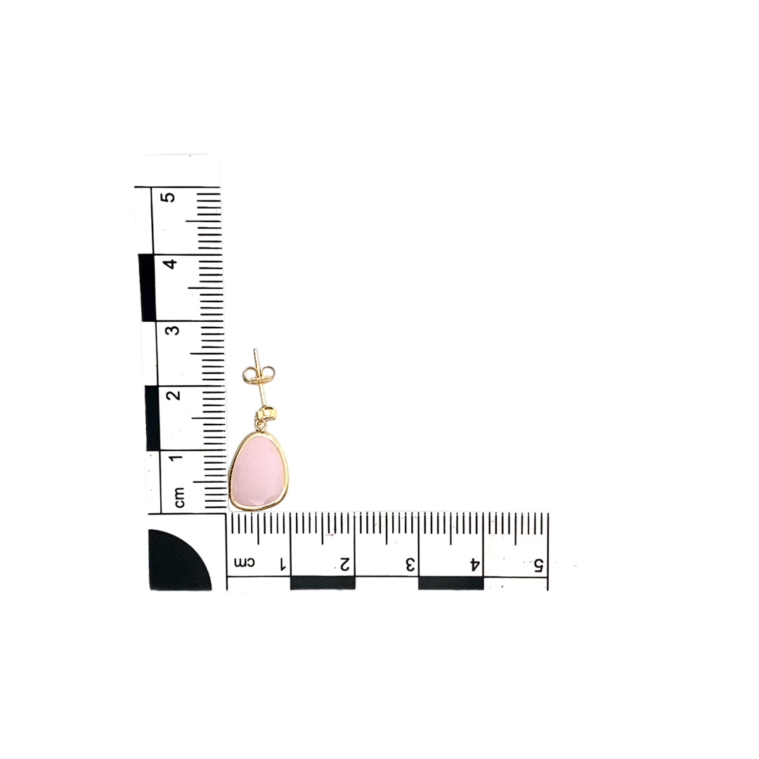 New 9ct Yellow Gold Cubic Zirconia & Pink Stone Set Drop Earrings with the weight 1.30 grams. The pink stones are each 11mm by 8mm and the cubic zirconia stones are each approximately 3mm diameter