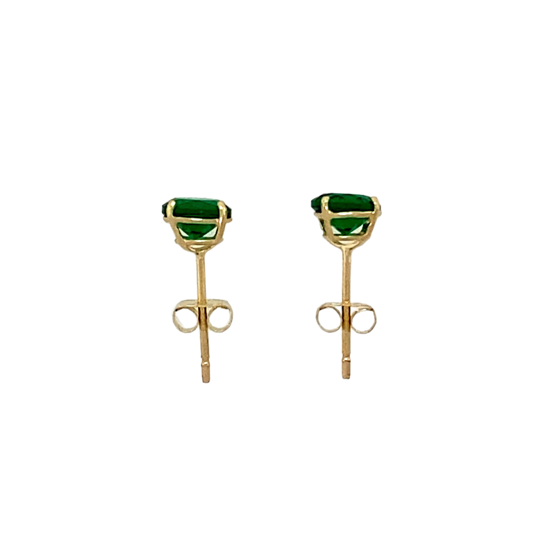 New 9ct Yellow Gold May Birthstone Stud Earrings with the weight 0.50 grams. The earrings are set with a synthetic emerald stone which is 5mm diameter