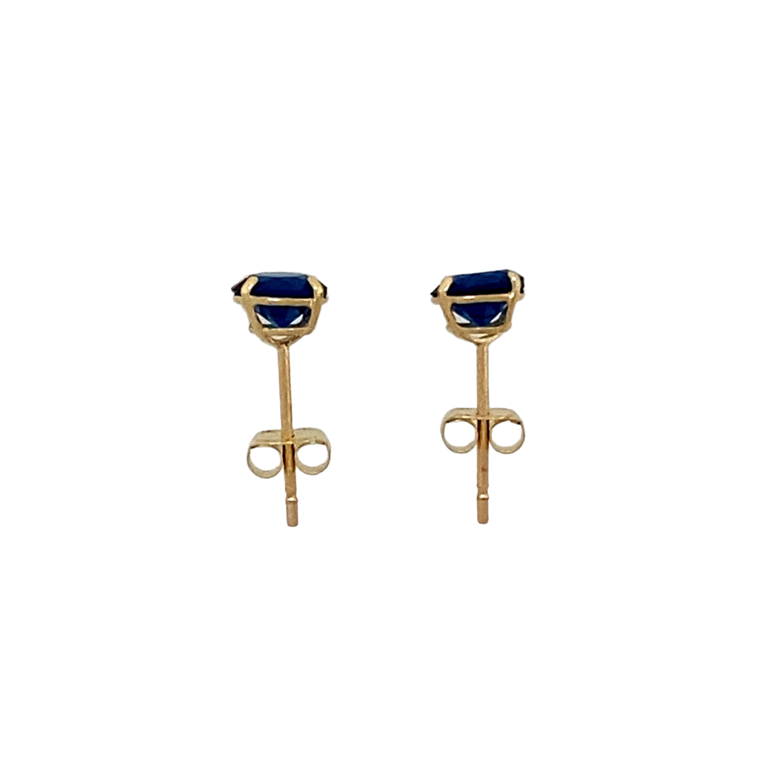 New 9ct Yellow Gold September Birthstone Stud Earrings with the weight 0.50 grams. The earrings are set with a synthetic sapphire stone which is 5mm diameter