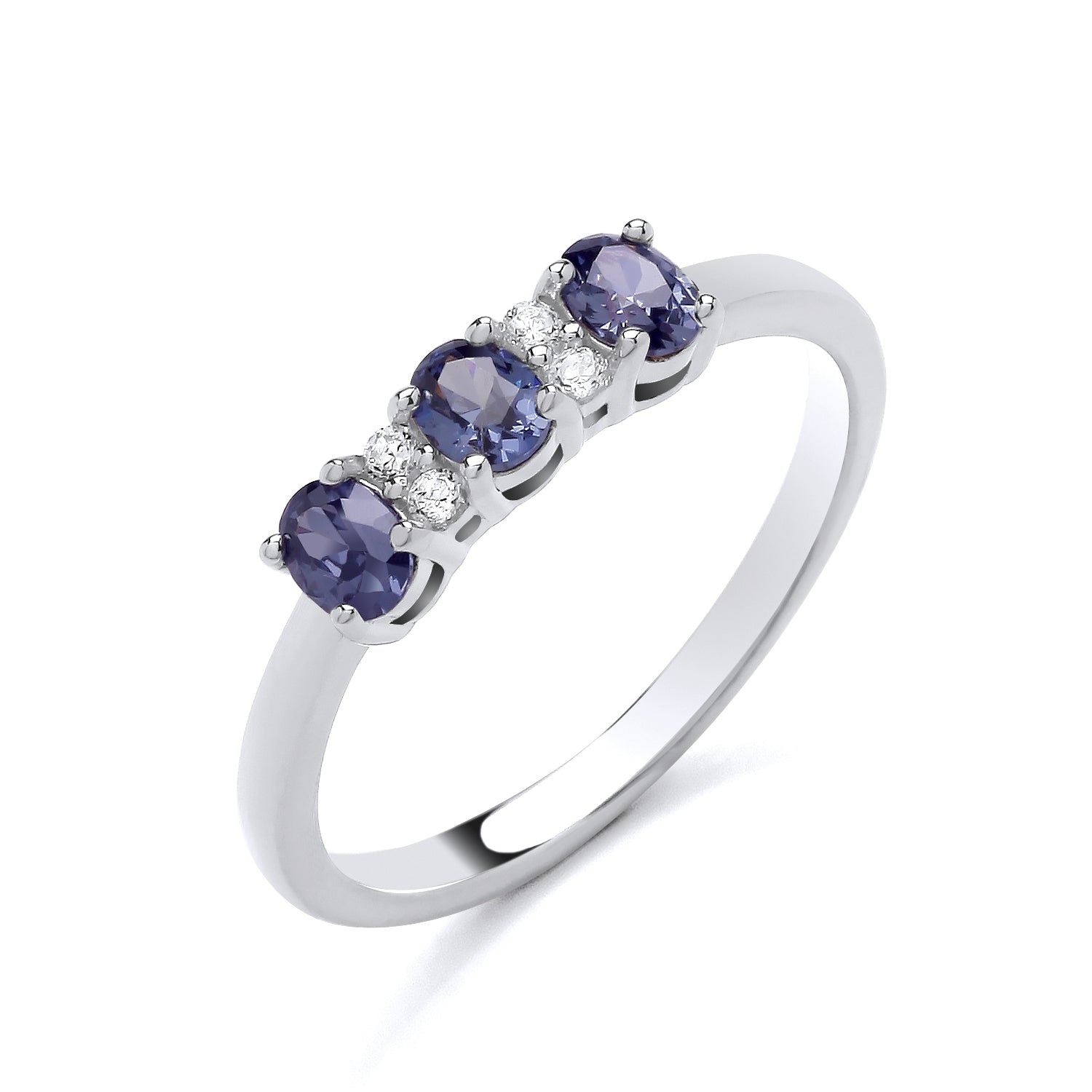 925 Silver Tanzanite & Cubic Zirconia Set Trilogy Ring