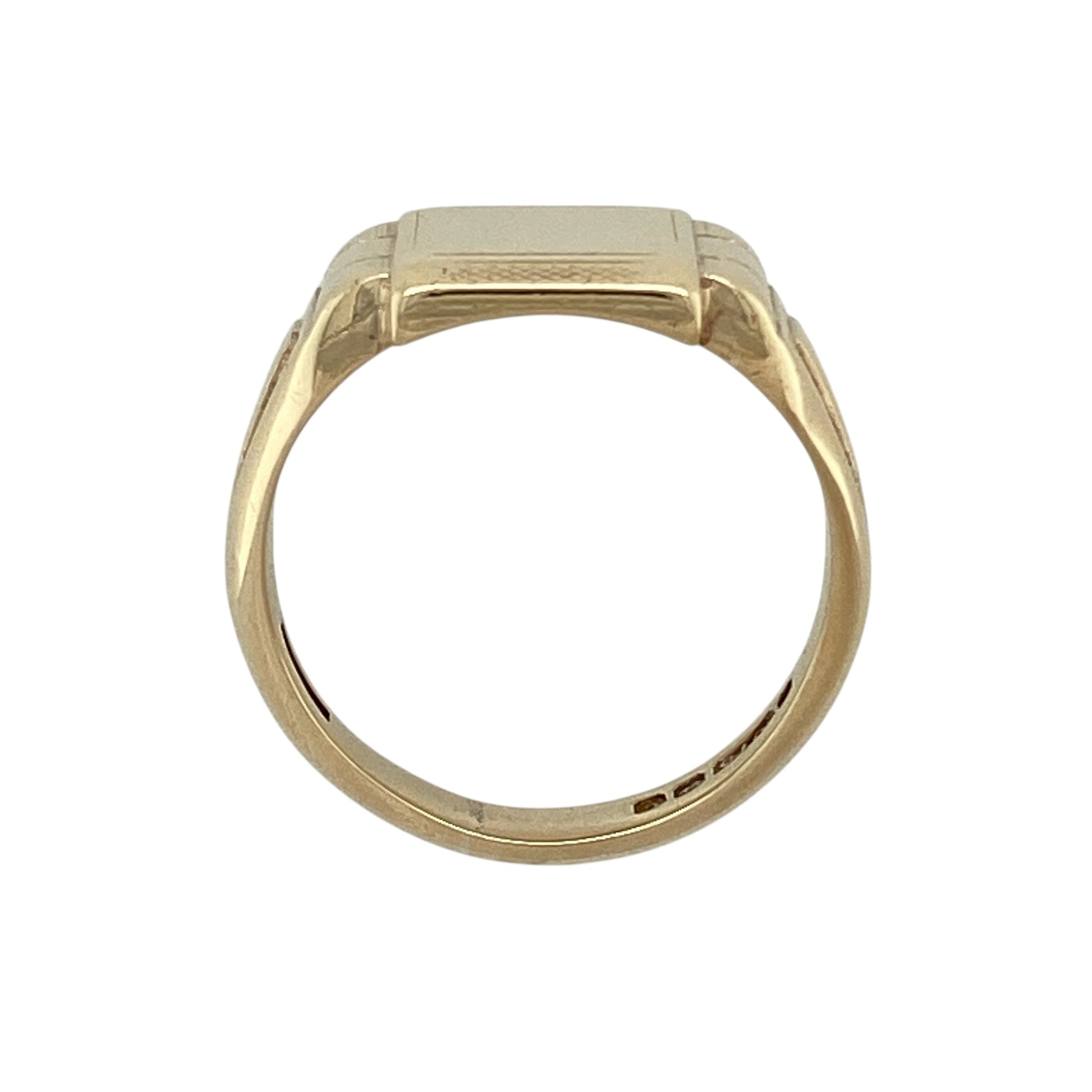 Bring bold structure and classic signet style to your jewellery collection with this pre-owned 9ct yellow gold rectangular signet ring, a distinctive design with strong character.