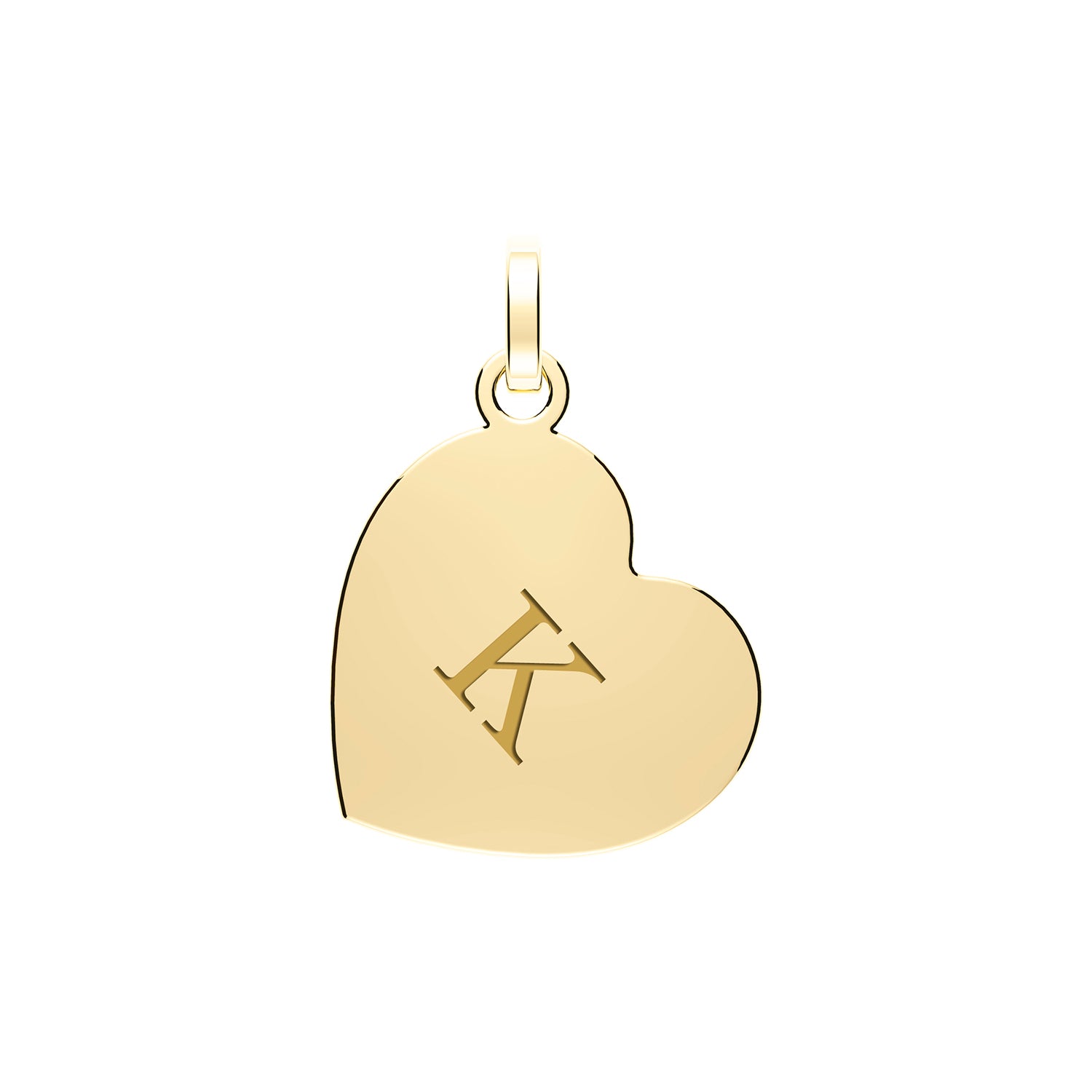 New 9ct Gold Initial Heart Pendant with the weight 0.40 grams. Each pendant has an engraved capital letter initial and is diameter 10mm