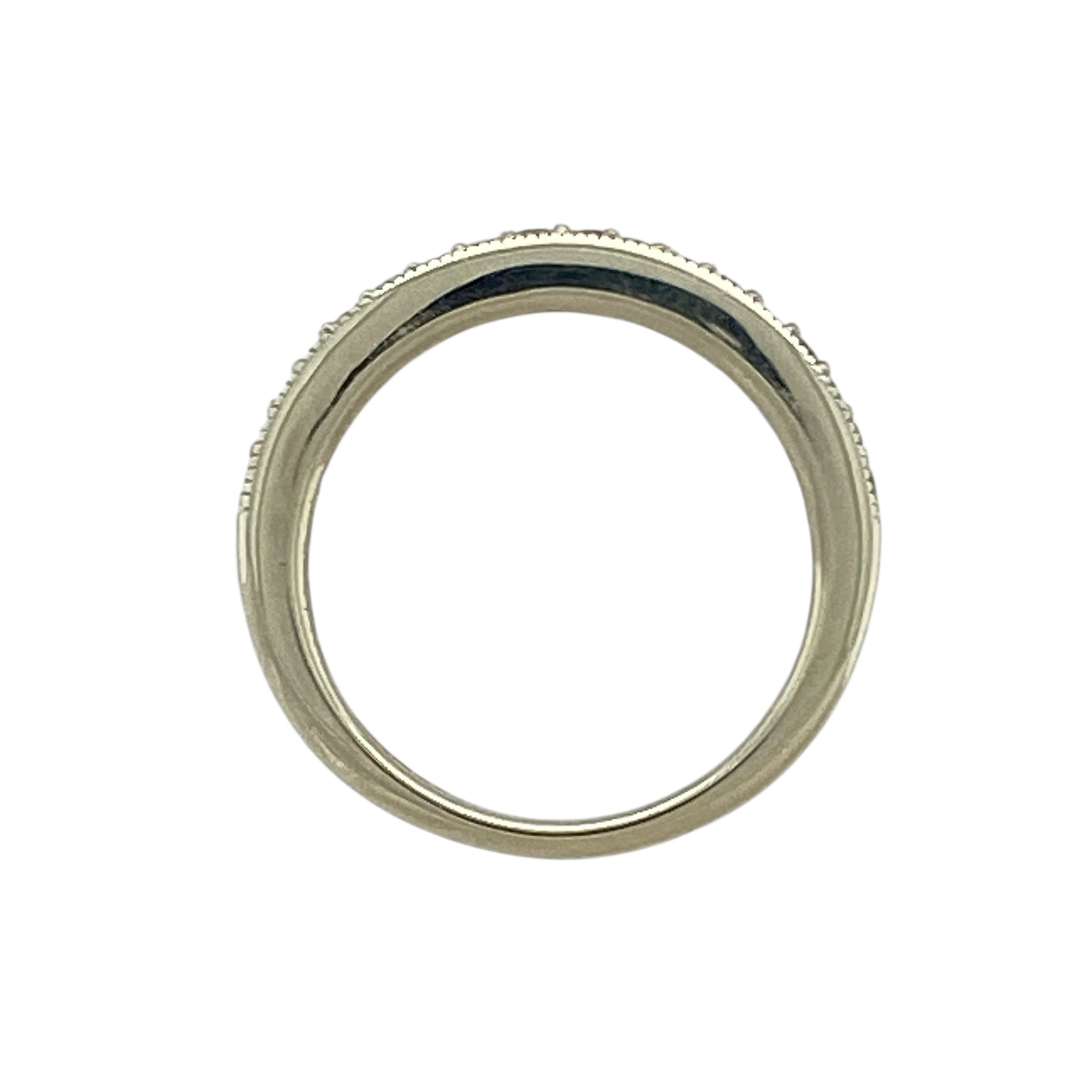 Bring refined detail and timeless sparkle to your jewellery collection with this pre-owned 9ct white gold diamond set band ring, a classic design with elegant vintage-inspired touches.