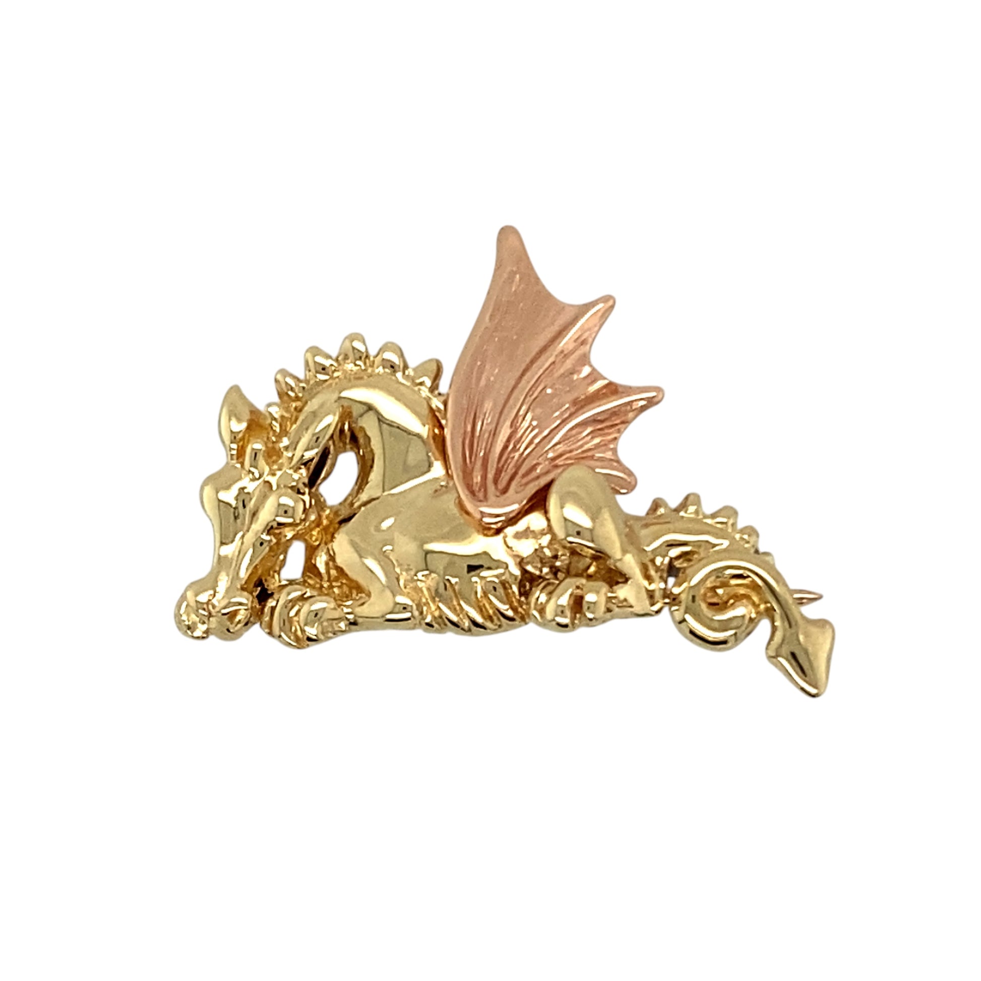 Design: The brooch features the iconic Welsh Dragon, beautifully detailed in contrasting tones of yellow and rose gold. The intricate design captures the power and symbolism of the dragon, representing courage and national pride.