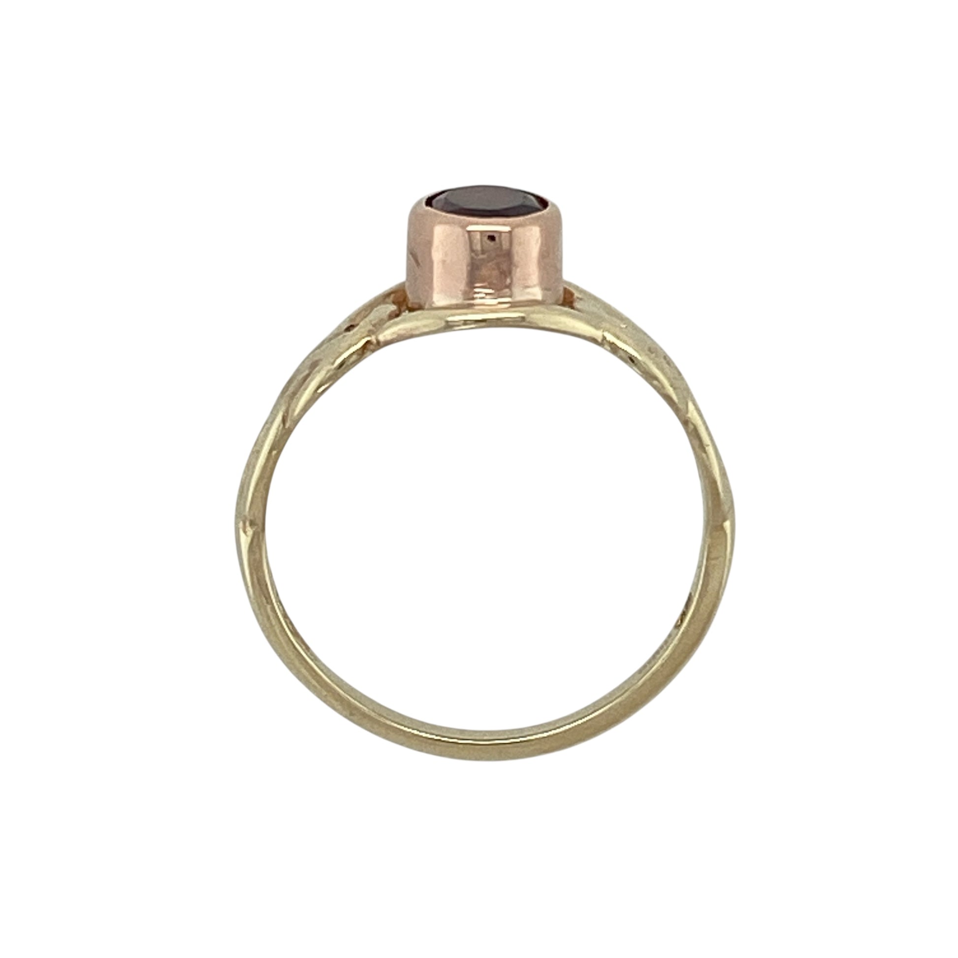 Material: Made from 9ct yellow and rose gold, the combination of metals enhances the depth of the garnet and adds a distinctive, decorative contrast.