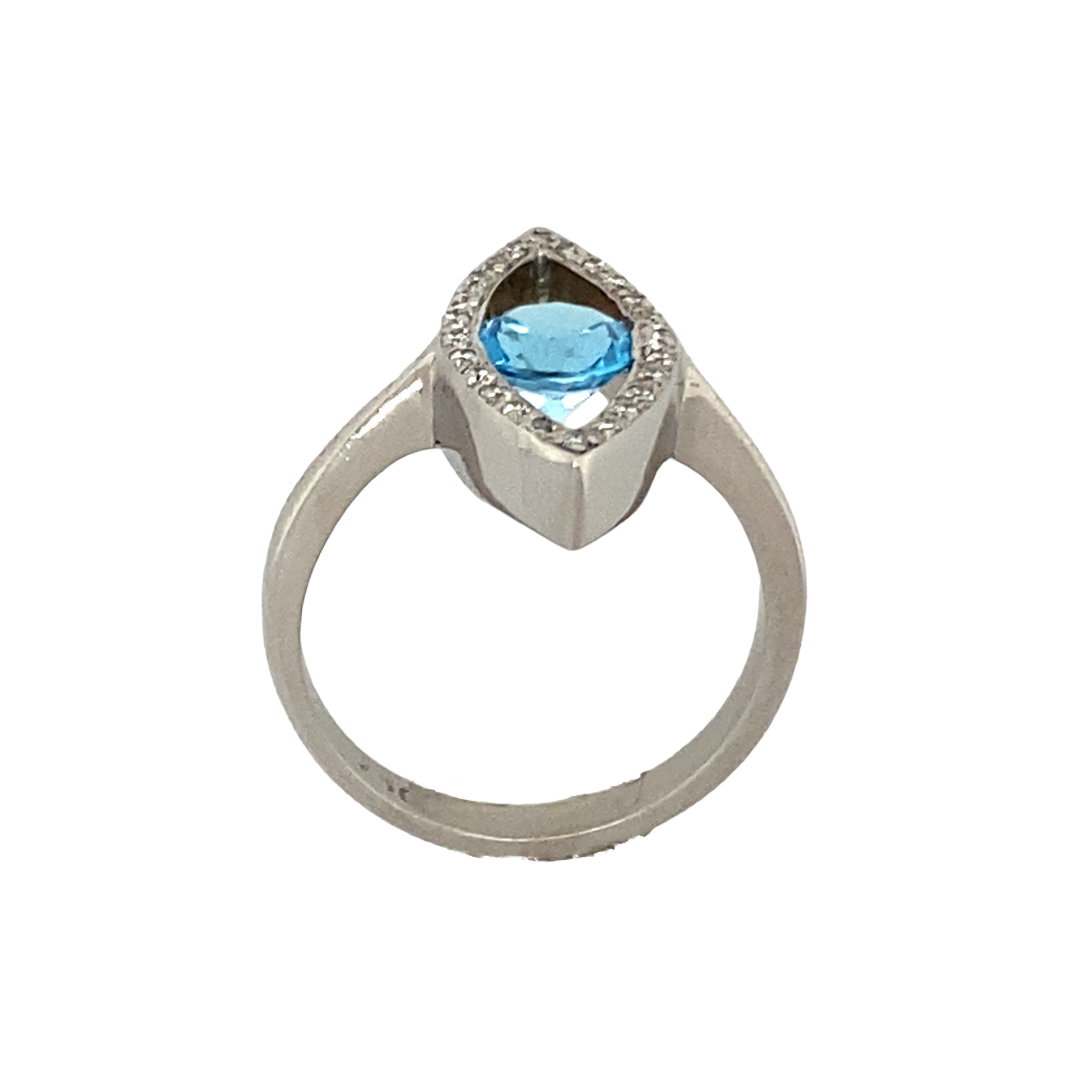 18ct White Gold Diamond & Blue Topaz Dress Ring